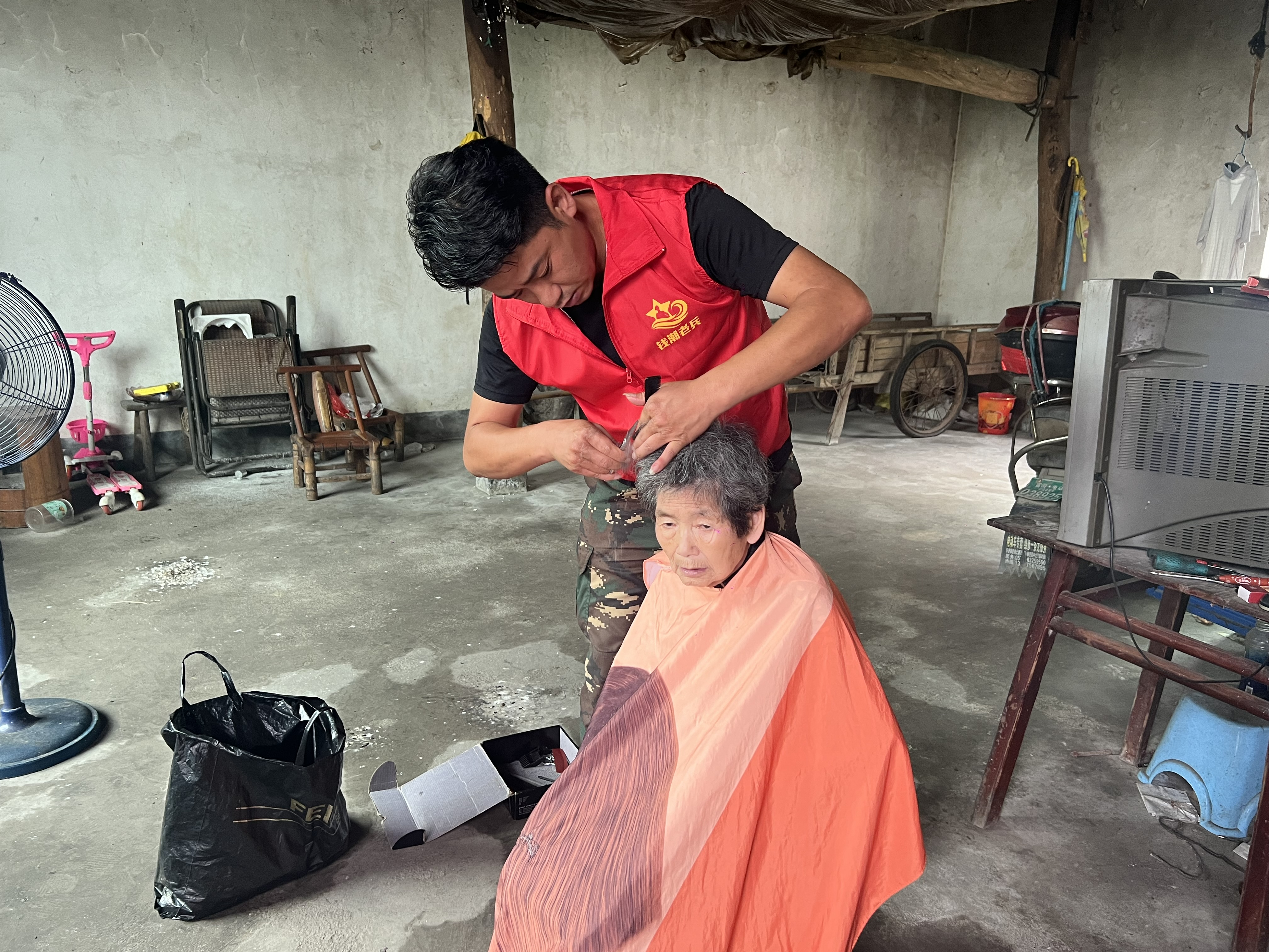 第二个阶段是“志愿服务显担当”。2024年7月17日上午,支部党员与查口村退役军人服务站党员共赴杭州市富阳区查口村开展志愿服务活动。活动中,支部党员为个别低保户、残保户送去了相关慰问品,并为他们检查身体状况、修剪头发等。