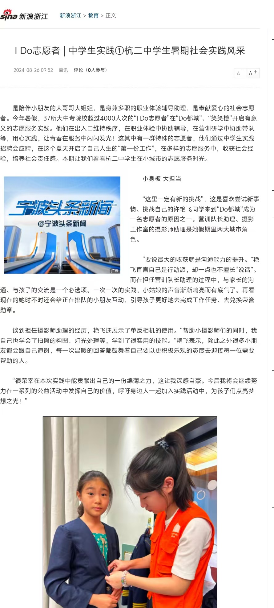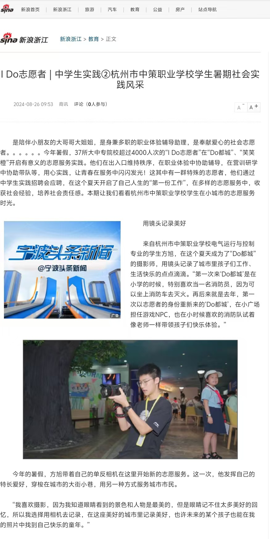 新浪浙江报道“Do都城”中学生志愿者暑期实践团