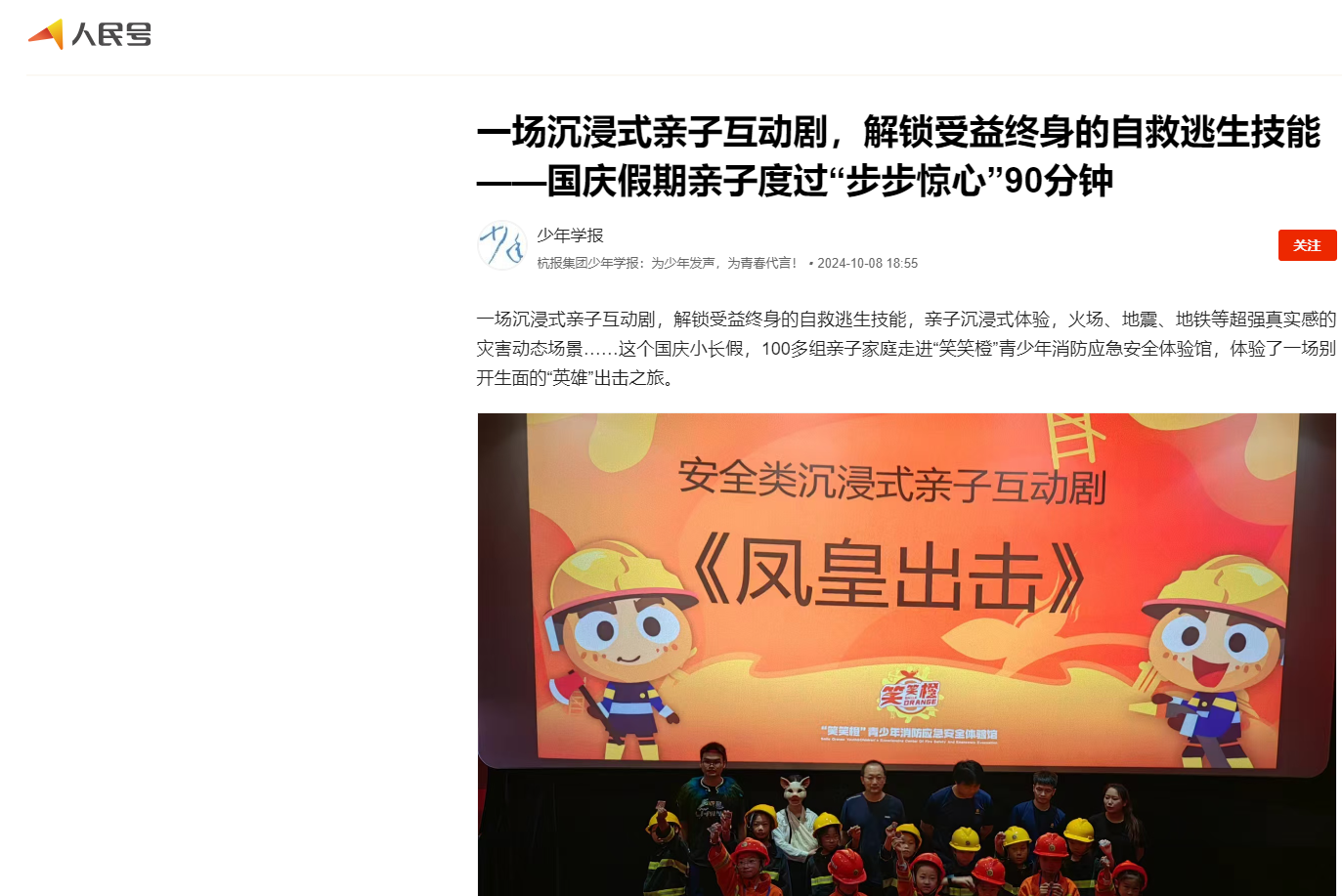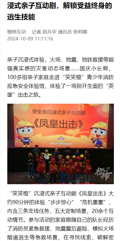 人民号、橙市互动、一点资讯报道“笑笑橙”沉浸式亲子互动剧