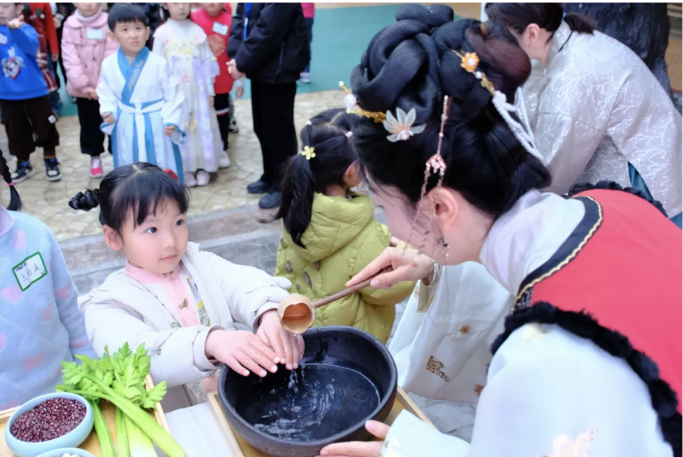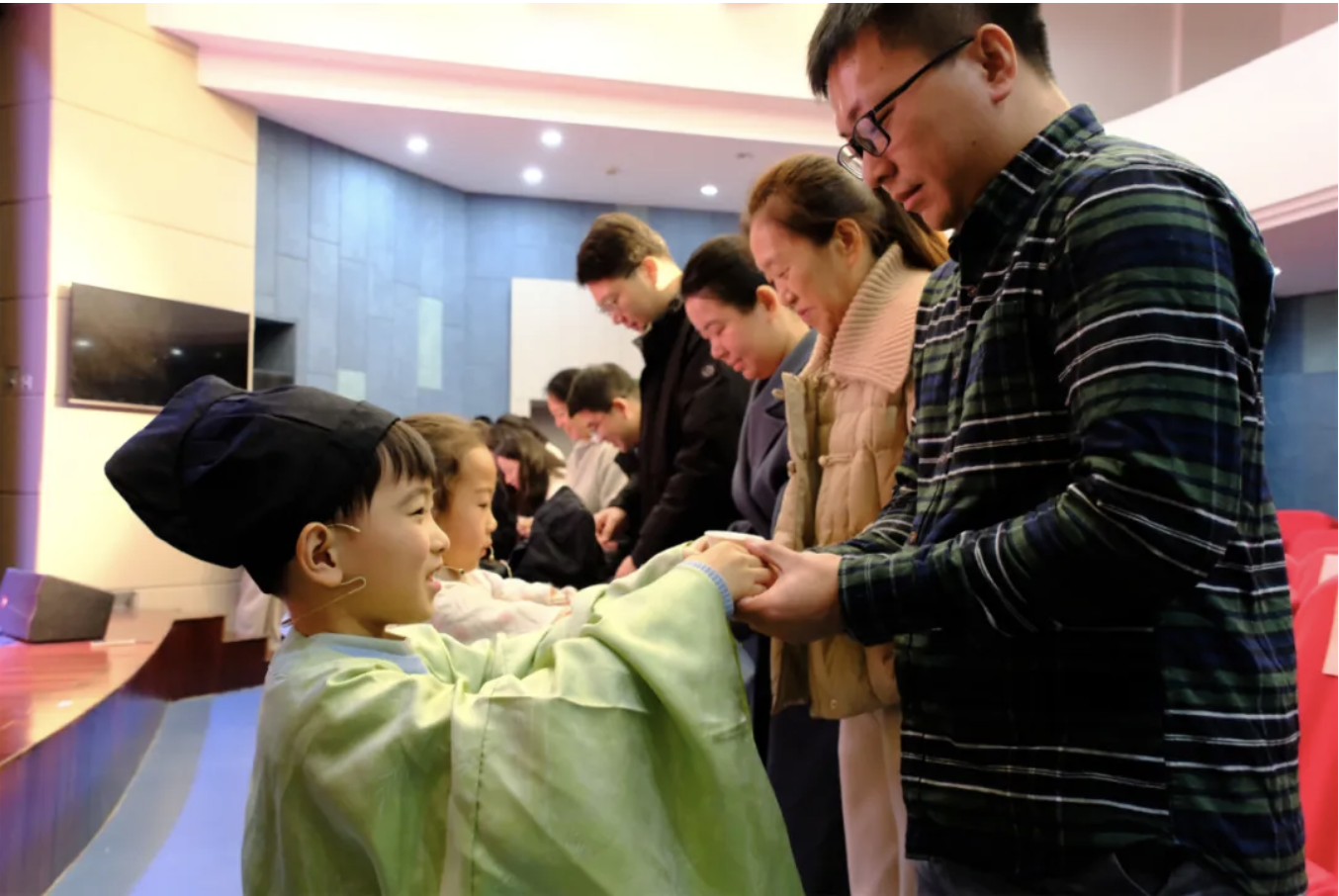 《礼记》有云,礼义之始,在于正容体,齐颜色,顺辞令。营员参与正衣冠、行拜师礼、朱砂启智、击鼓明志等活动,感知传统文化中的仪式感。