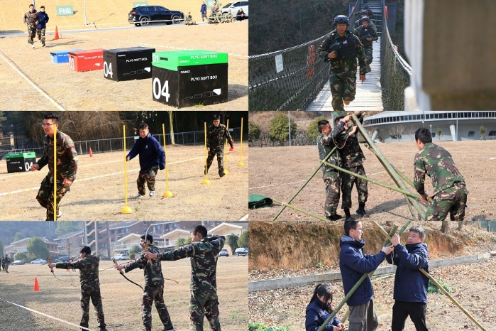 在下午的综合演练中,设置了平地障碍接力、山地CS寻宝、庇护所搭建等项目,全面检验了各营地教学团队的团结协作能力、快速反应能力和综合身体素质。