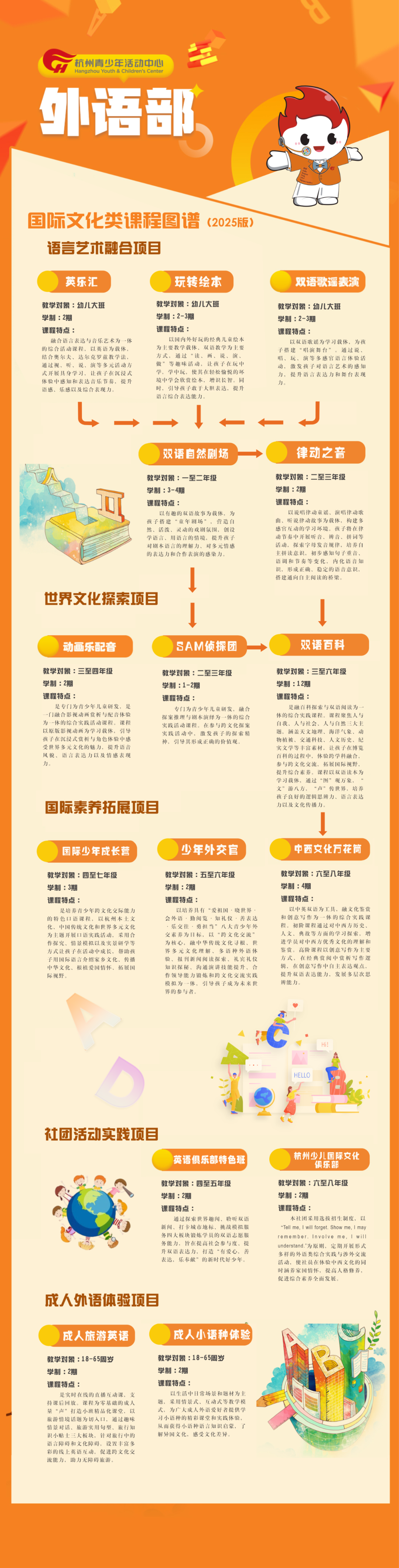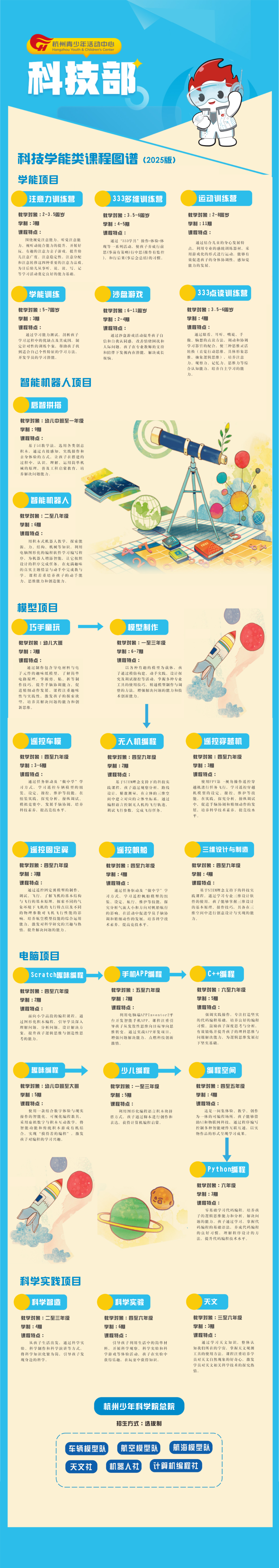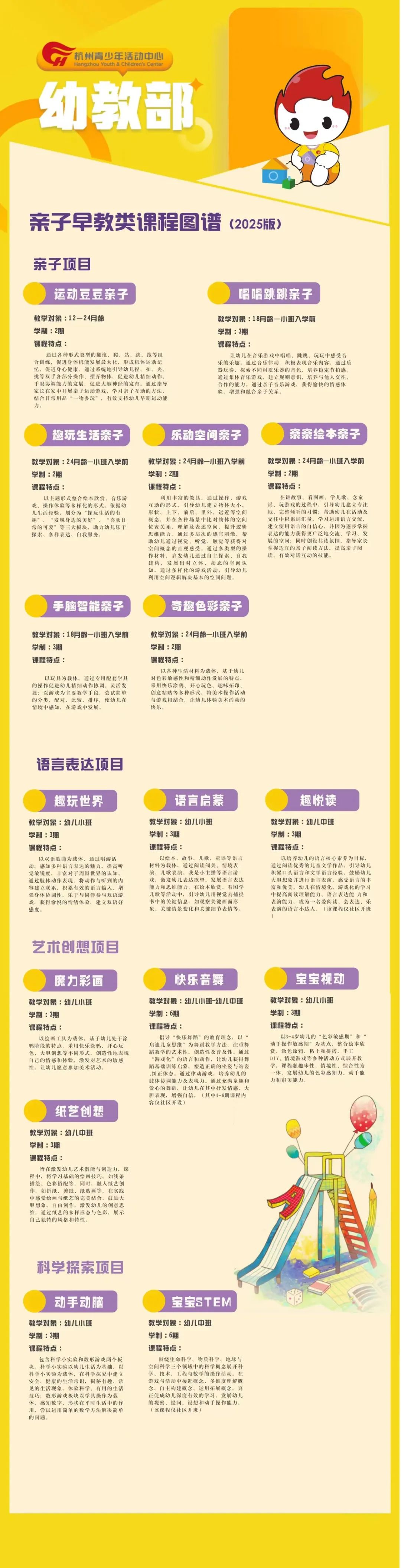 12月18日(本周三),杭州青少年活动中心2025年春季兴趣课程招生就要开始了。如果您的孩子或您自己想要报名,可以先从下面这八张详细的课程图谱中找找感兴趣的课程哦。