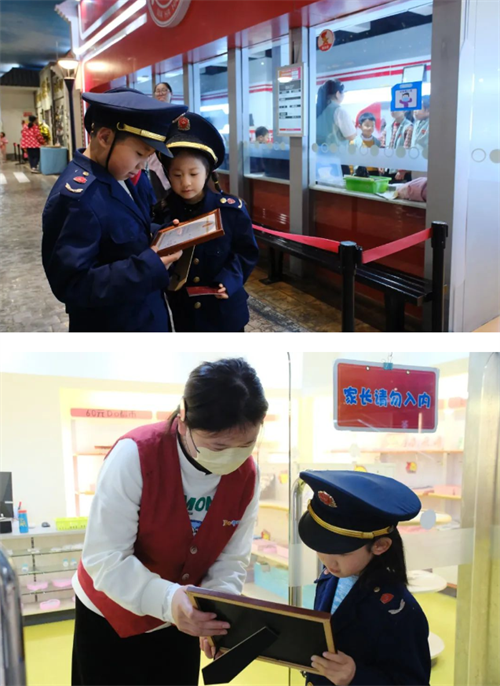 “Do都城”市场监督管理局,孩子体验工商局的执法人员工作,学习营业执照的重要性,依次对场馆的营业执照进行抽查、检查是否存在问题。“营业执照是否过期?”“如果过期了又该如何处理?”小小执法人员成为了城市里的一道风景线。