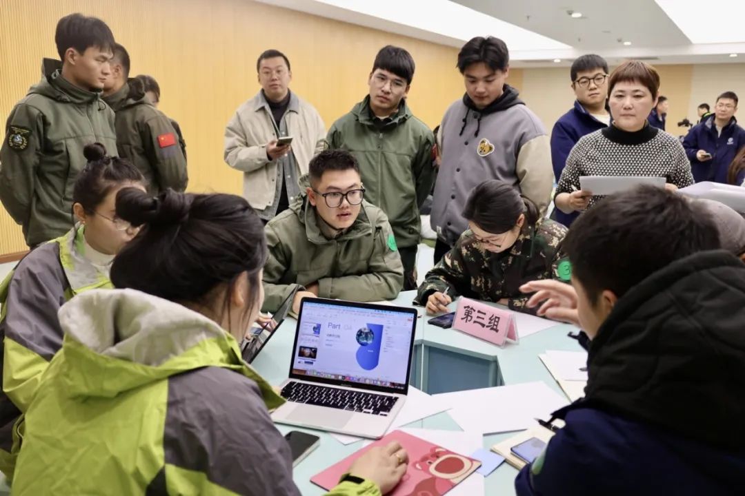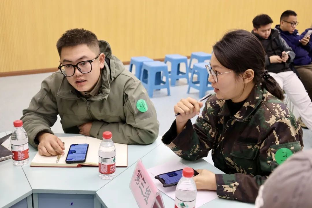 在课程设计竞赛中,每营地选送6人参赛,所有参赛选手根据抽签分为3个小组。每个小组以无领导小组讨论的形式,全体组员讨论进行课程设计,随后每组选派 一人进行课程设计展示,三个小组以“同课异构”的方式,针对“国防教育:安全急救 包扎止血 ”活动,从教法学法的选择到教学流程的预设,全面阐述了教学内容,表现了良好的教学设计能力、课堂组织能力和语言表达能力。