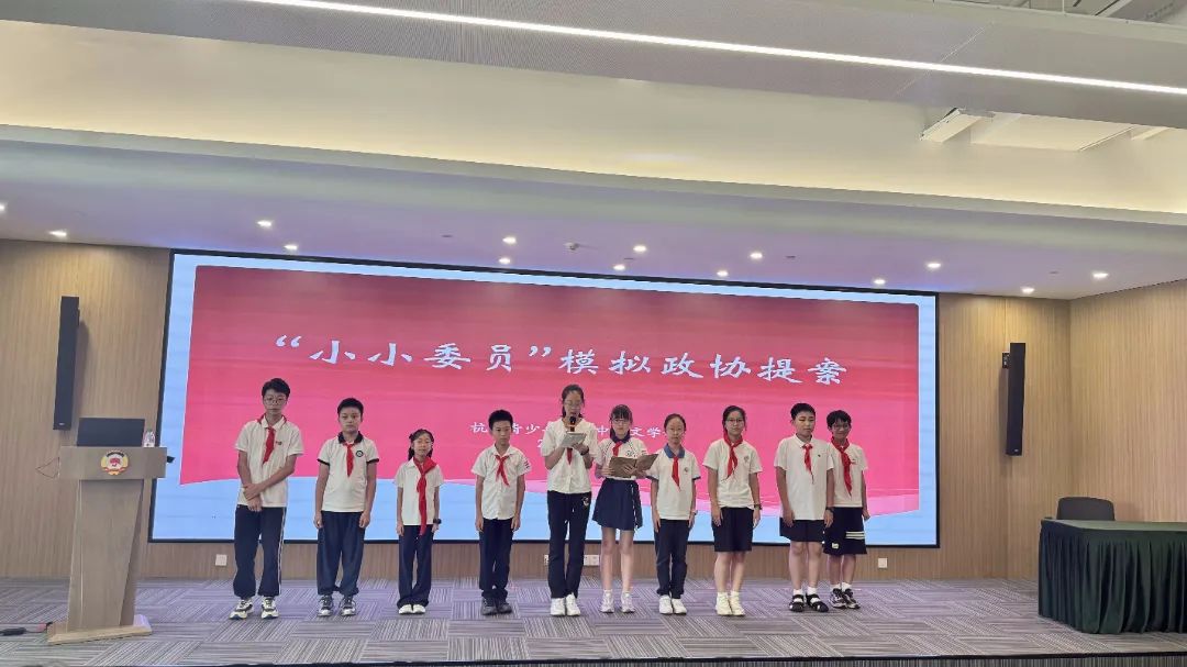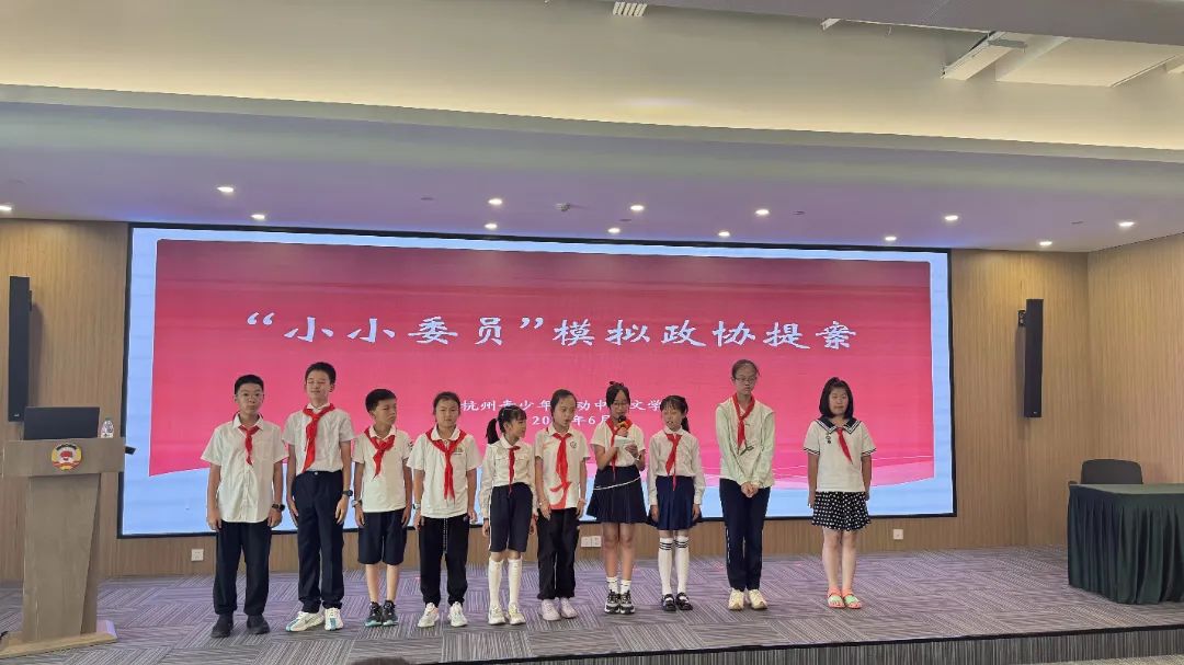 2025年6月30日,由杭州青少年活动中心文学部与杭州市政协新时代协商民主实践中心共同举办的“小小委员”模拟政协提案培训交流活动在杭州政协实践中心举行。来自杭州青少年活动中心文学部大队的优秀少先队员代表参与其中,沉浸式感受协商民主的魅力,开启了一场别开生面的民主实践之旅。