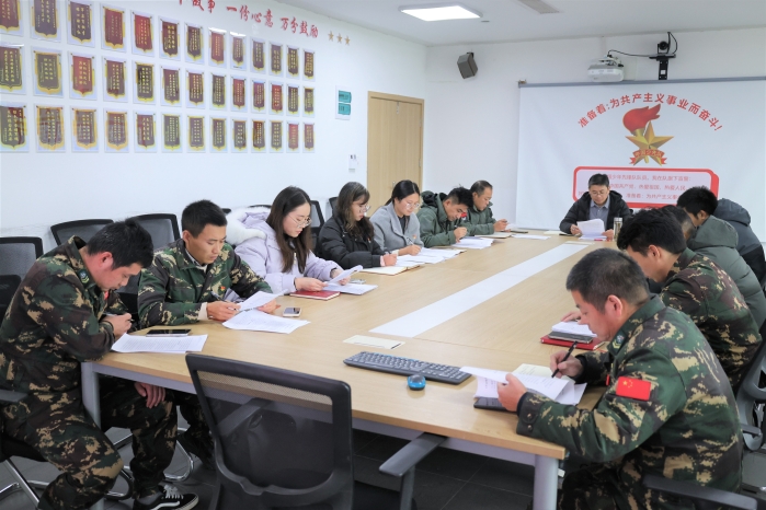 为进一步强化党员理想信念,推动基层党组织战斗堡垒和党员先锋模范作用充分发挥,2024年12月25日下午,第九党支部全体党员在营地航母楼五楼会议室开展以“深学细悟强思想,总结展望谱新篇”为主题的党日活动。会议由支部书记陈俊华同志主持,在岗全体党员参加。