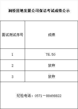 2025年杭州洞桥营地服务发展有限公司保洁员招聘成绩公示