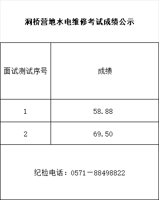 2025年杭州(国际)青少年洞桥营地水电维修招聘成绩公告