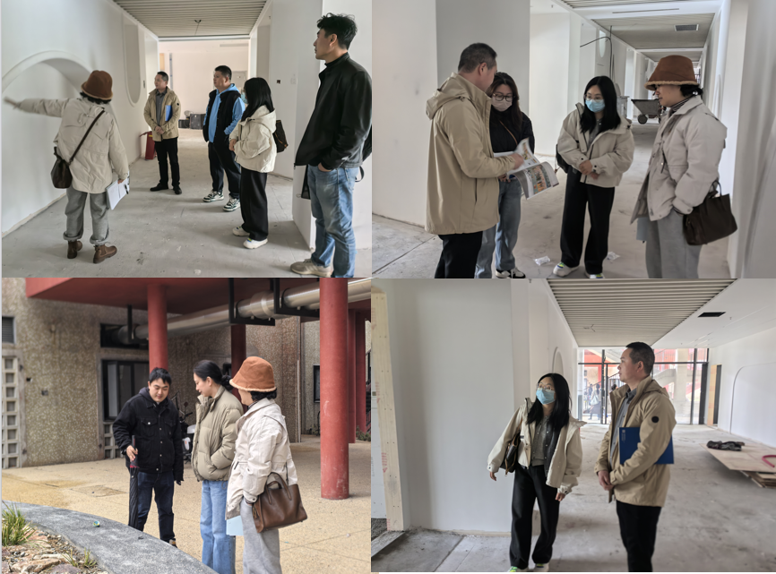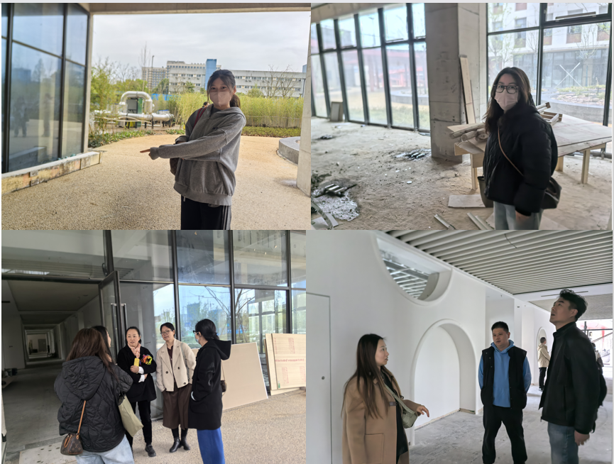 实地考察,现场研讨:在现场研讨中,老师们根据现场建设情况,就各功能区特点,与设计师及中心负责建设的相关老师进行了深入交流,如对教室空间实际建设中的新情况、户外电机噪音问题、家长休息区、办公室桌椅摆放及分区、仓库尺寸及后期摆放等现场提出了建议。