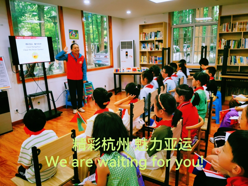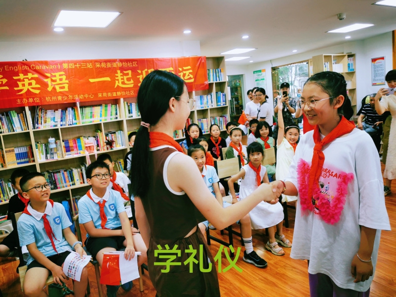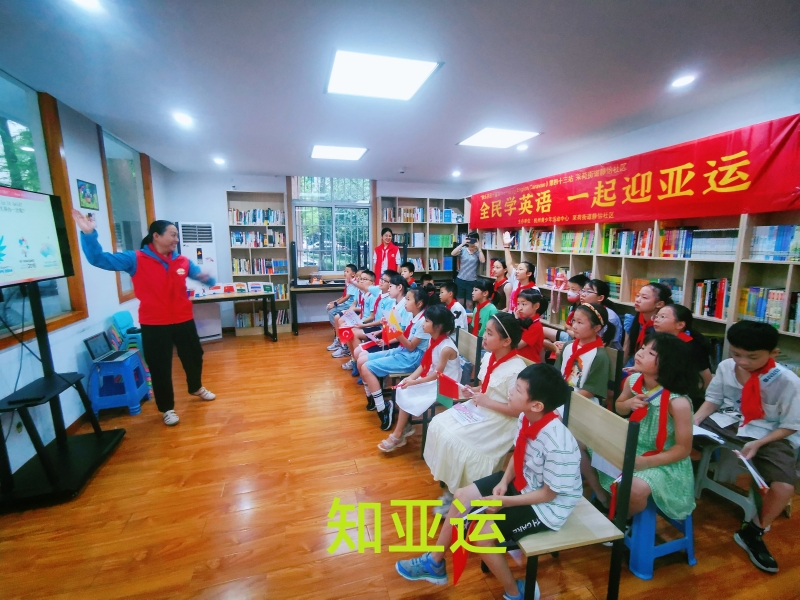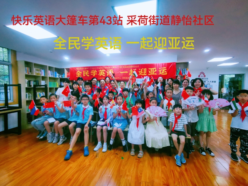 杭州2022年第19届亚运会将于2023年9月23日至10月8日举行,届时将迎来更多的外国友人。为了让杭城青少年更好地为亚运服务,杭州青少年活动中心外语部“快乐英语大篷车”发挥独特的资源优势,7月3日上午走进采荷街道静怡社区开展“全民学英语 一起迎亚运”的活动,共计40人参与。本次活动分四大板块,分别为“知亚运”、“识国旗”、“学礼仪”和“健体魄”。以“精彩亚运,魅力杭州! I love Hangzhou! I love the Asian Games!”双语口号拉开序幕。杭州青少年活动中心外语部的陈老师用有趣的方式向社区小朋友介绍亚运参与国的双语表达,学习用各国语言打招呼,了解各国见面礼仪,如握手、拥抱、双手合十、鞠躬等等,现场“你好,Hello,안녕하세요,Namaste ,こんにちは……”各国问候声此起彼伏!