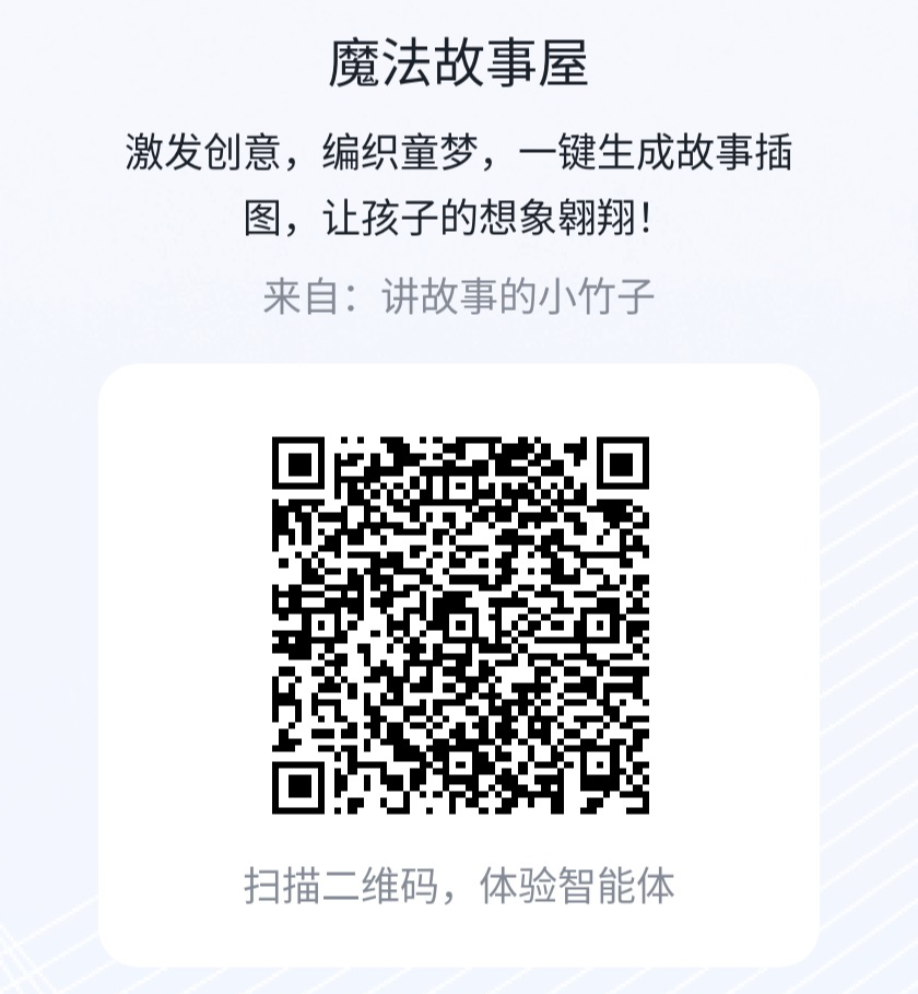 扫描二维码:进入“魔法故事屋”故事创编小程序。