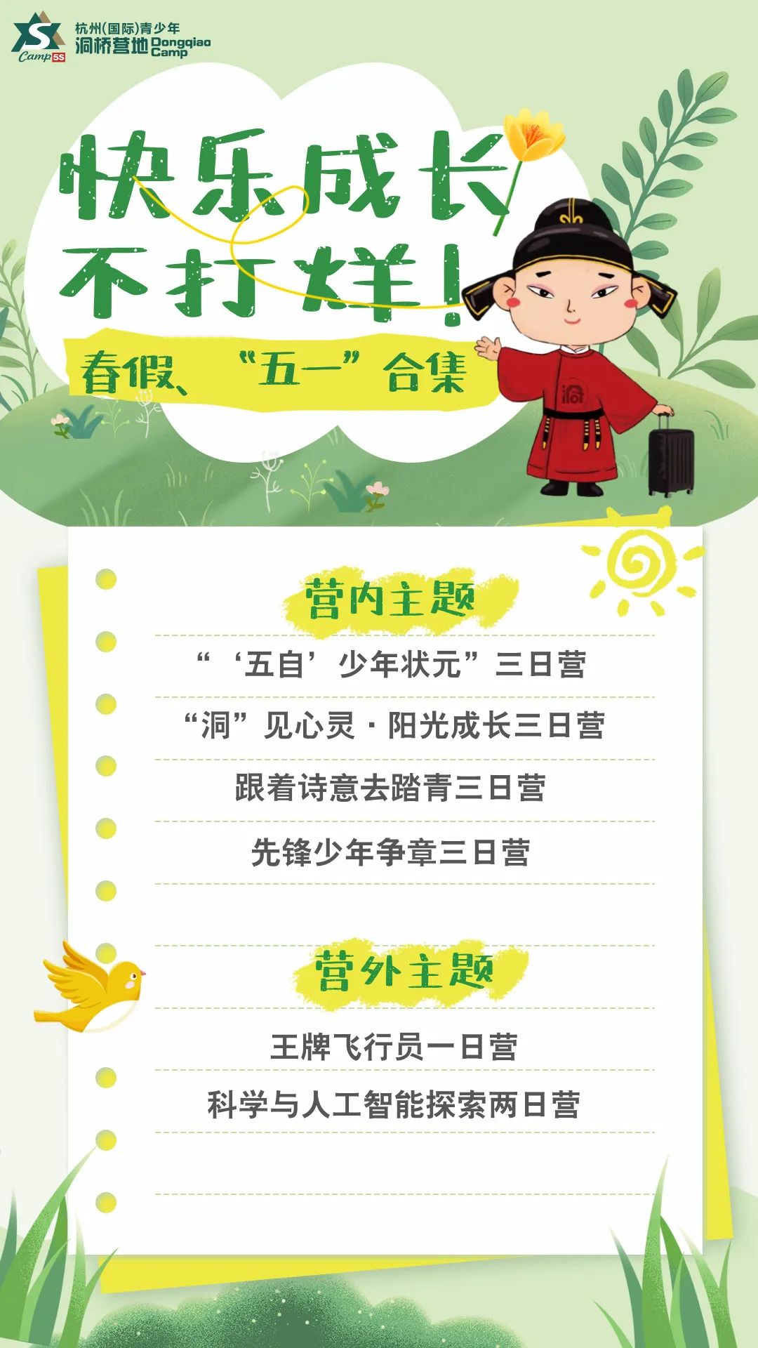 今年春假、“五一”,洞桥营地特推出了“王牌飞行员”等六大主题假日营。这一次,活动内容新设计、活动安排新策划、挑战难度新调整,请收好下面这份攻略,开启你的新旅程吧!