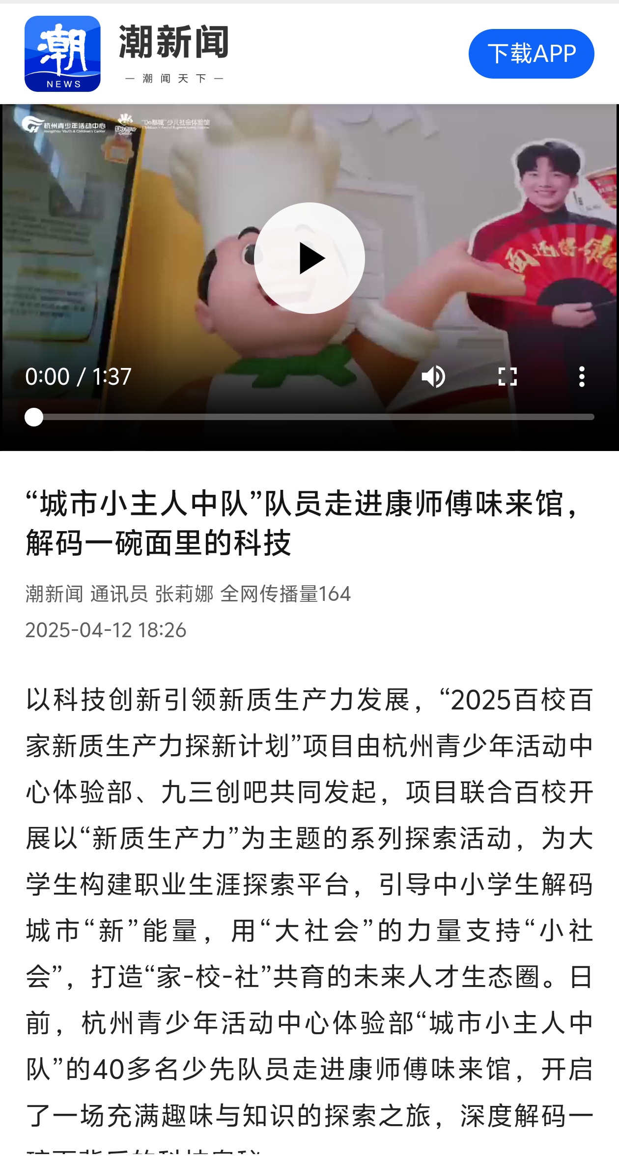 潮新闻报道“城市小主人中队”走进康师傅味来馆解码一碗面的科技