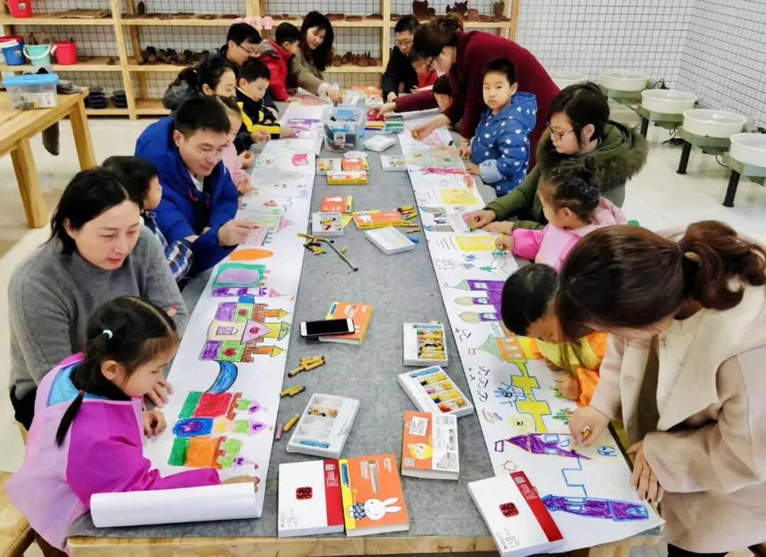 绘画涂鸦亲子课程是针对3岁到4岁半儿童的亲子类绘画课程,共三个学期,每次课程60分钟。课程内容主要是以涂鸦期儿童绘画教学为主线,利用丰富的材料和游戏环节的设置让孩子们简单地了解点线面的构成和颜色的基本知识。