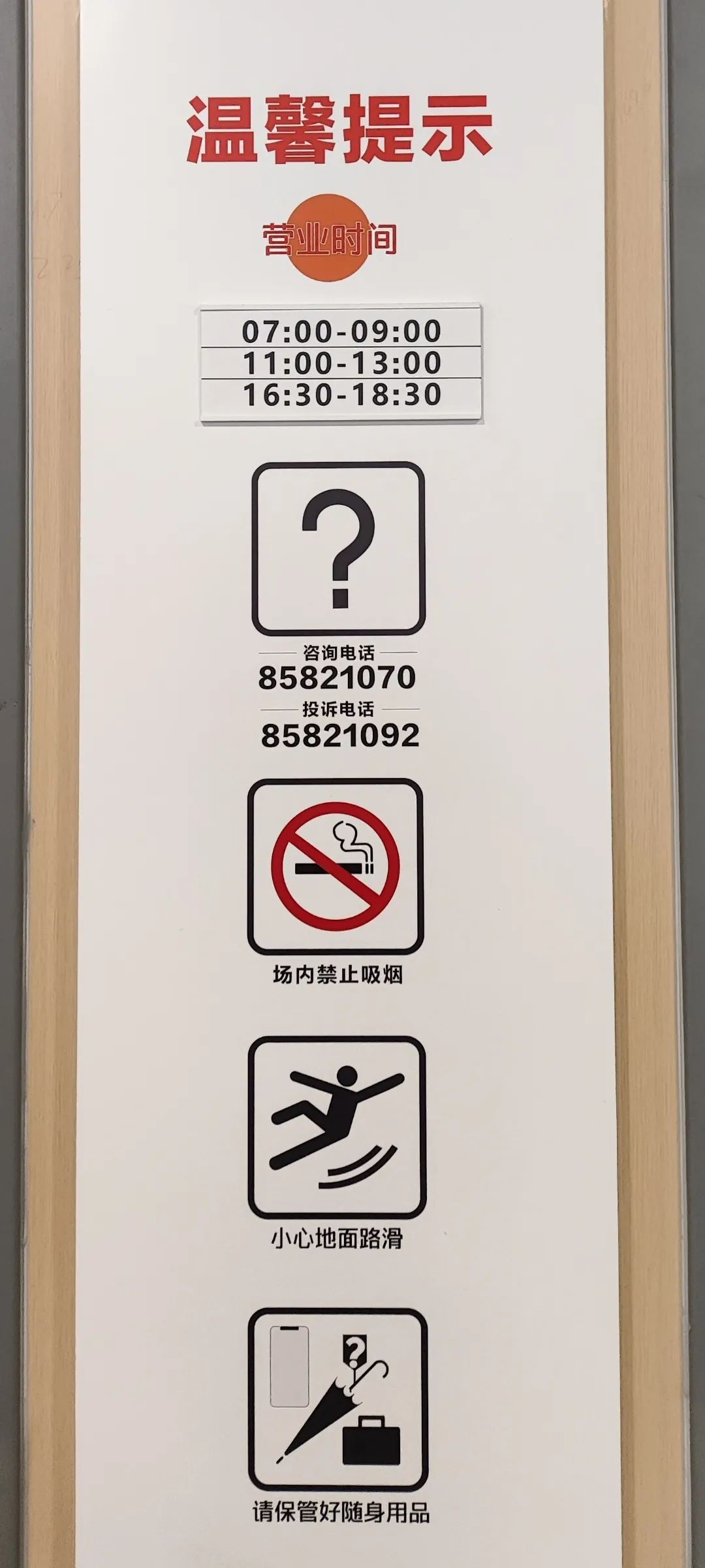 行走时请放慢脚步,小心滑倒,特别是在取餐、端饮品的过程中,务必注意安全。