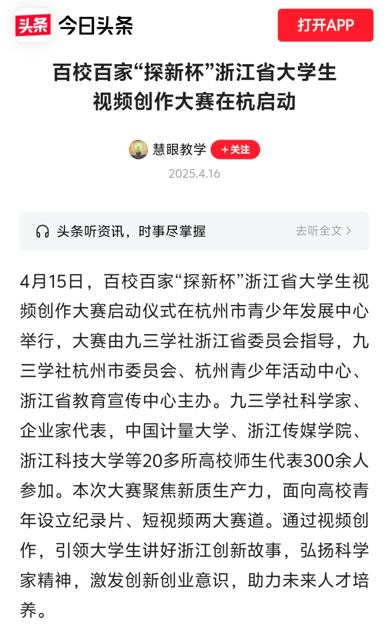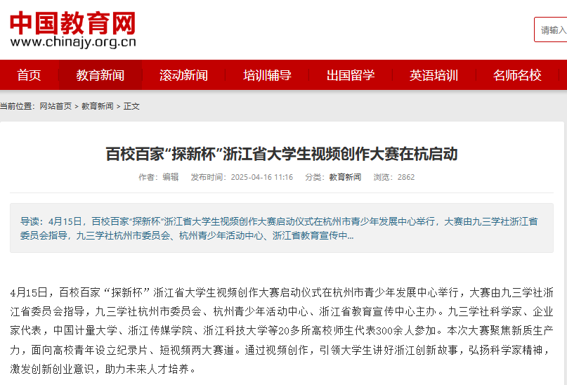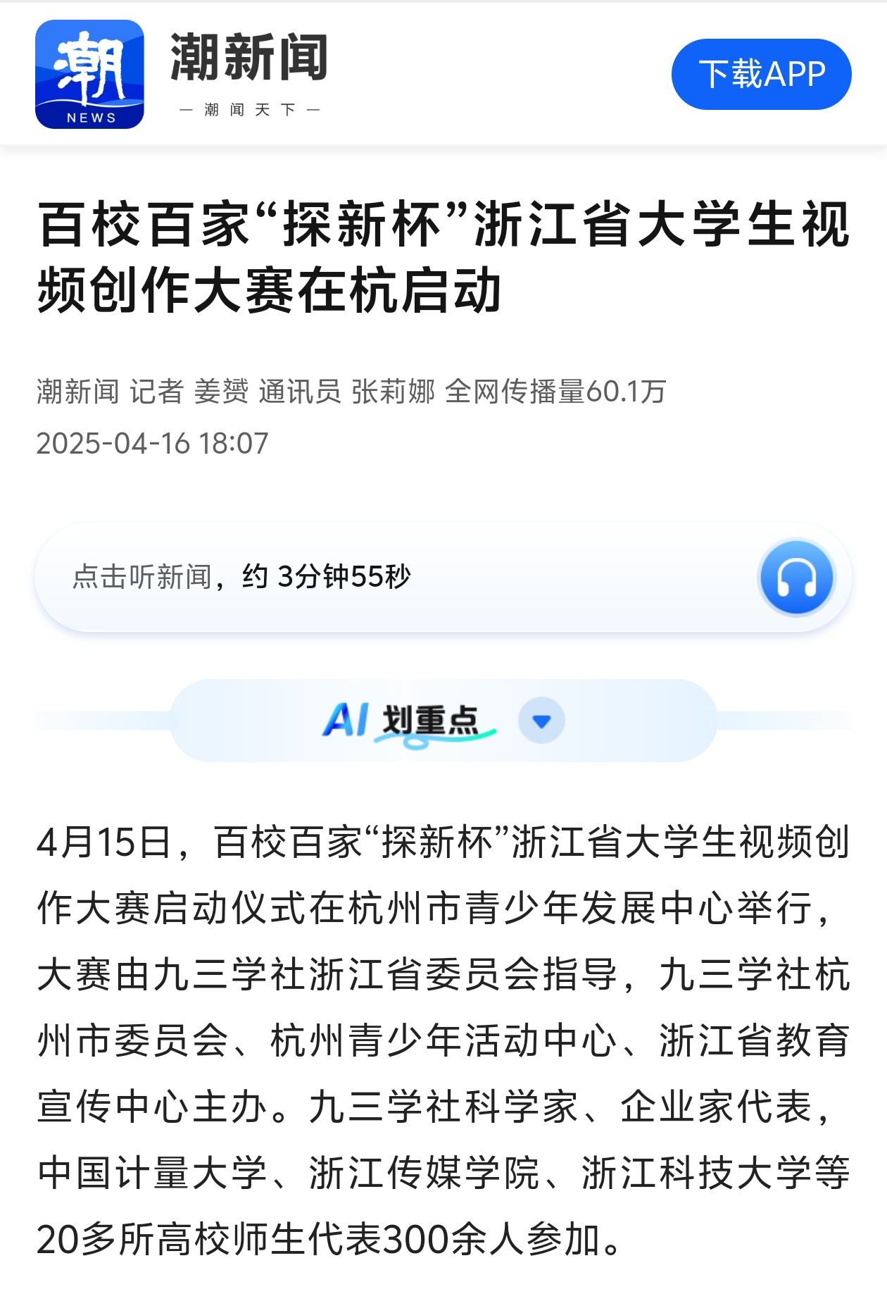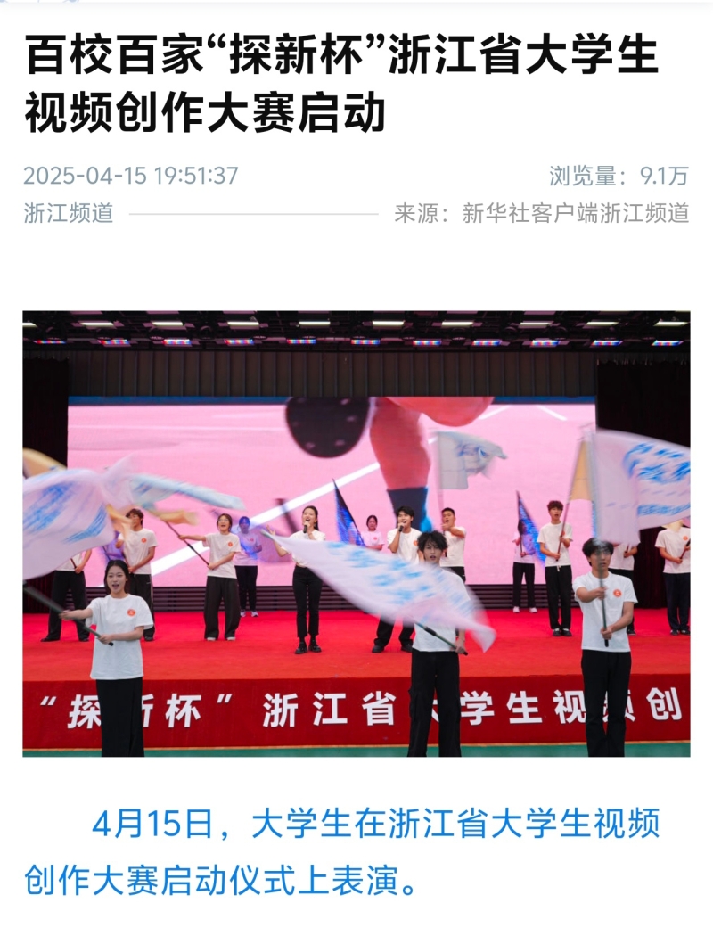 新华社、凤凰新闻、潮新闻等报道百校百家“探新杯”浙江省大学生视频创作大赛在杭启动