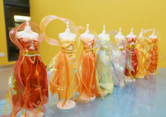 本次研学以敦煌文化为主题,引导营员探究敦煌飞天服饰,飘逸的衣裙、飞舞的彩带,设计并制作一款飞天服饰;欣赏美轮美奂的敦煌藻井纹,动手动脑设计藻井图案饰品,拍摄飞天形象照,在艺术中提升审美能力与想象力,在体验中感受敦煌文化的魅力。