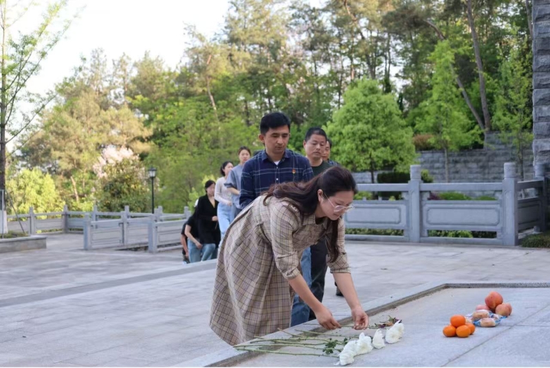 接着,支部党员拾级而上来到馆旁烈士公园的悼念广场烈士浮雕前,逐一上前敬献鲜花并集体向革命先烈鞠躬、默哀。