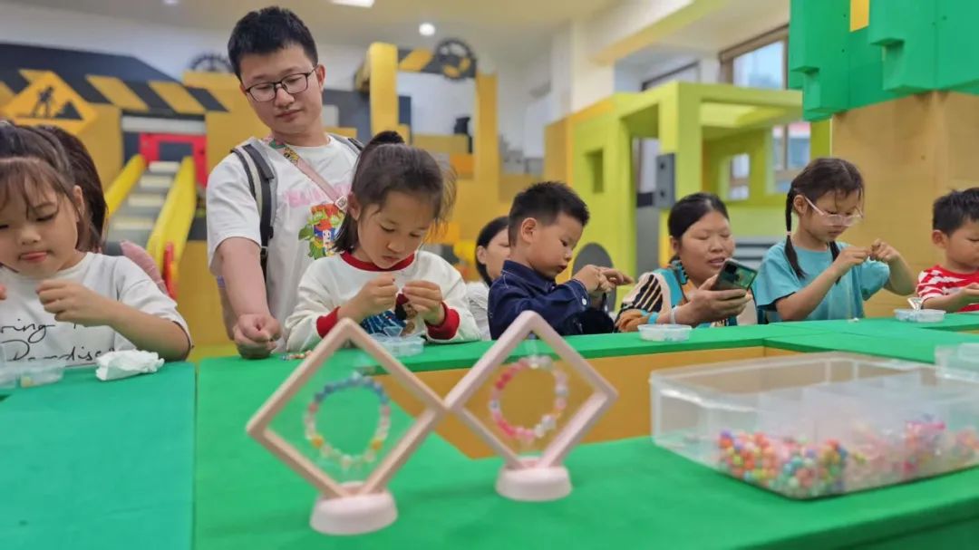 家长不再是旁观者!专属亲子操作台+主题创作手册,爸妈穿针引线,宝贝创意指挥,共同完成“家庭联名款”手链。现场爸爸笑称:“比乐高还上瘾!”