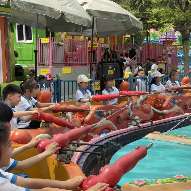 据带队老师介绍,这些可爱的同学们马上就要升入二年级了,在他们小小的胸膛里,怀揣着一个闪闪发光的梦想——加入光荣的少先队,戴上鲜艳夺目的红领巾。“实践是最好的成长礼。”老师指着活动中心飘扬的队旗说道:“我们特意选择在乐园开展纪律教育,让孩子们懂得——真正的自由,源于对规则的敬畏与坚守。”此刻,儿童乐园的欢笑声与预备队员的誓言交织,奏响新时代少年的成长乐章。