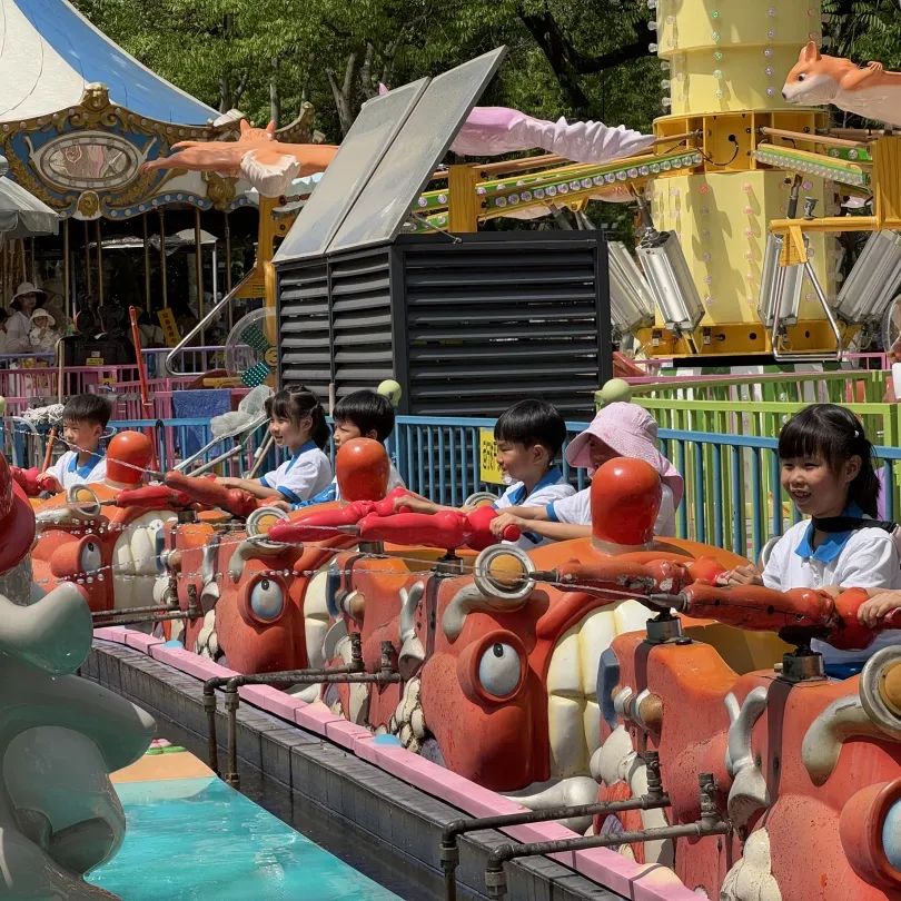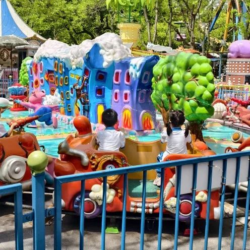 转过儿童乐园的内广场,五彩斑斓的游乐设备仿佛童话城堡,倒映在孩子们亮晶晶的眸子里。“海盗船”在蓝天下划出欢快的弧线,“小飞机”旋起七彩光晕,黄色轨道上的“太空漫步”引得队伍里泛起稚气的惊叹:“这个好像宇宙飞船!”