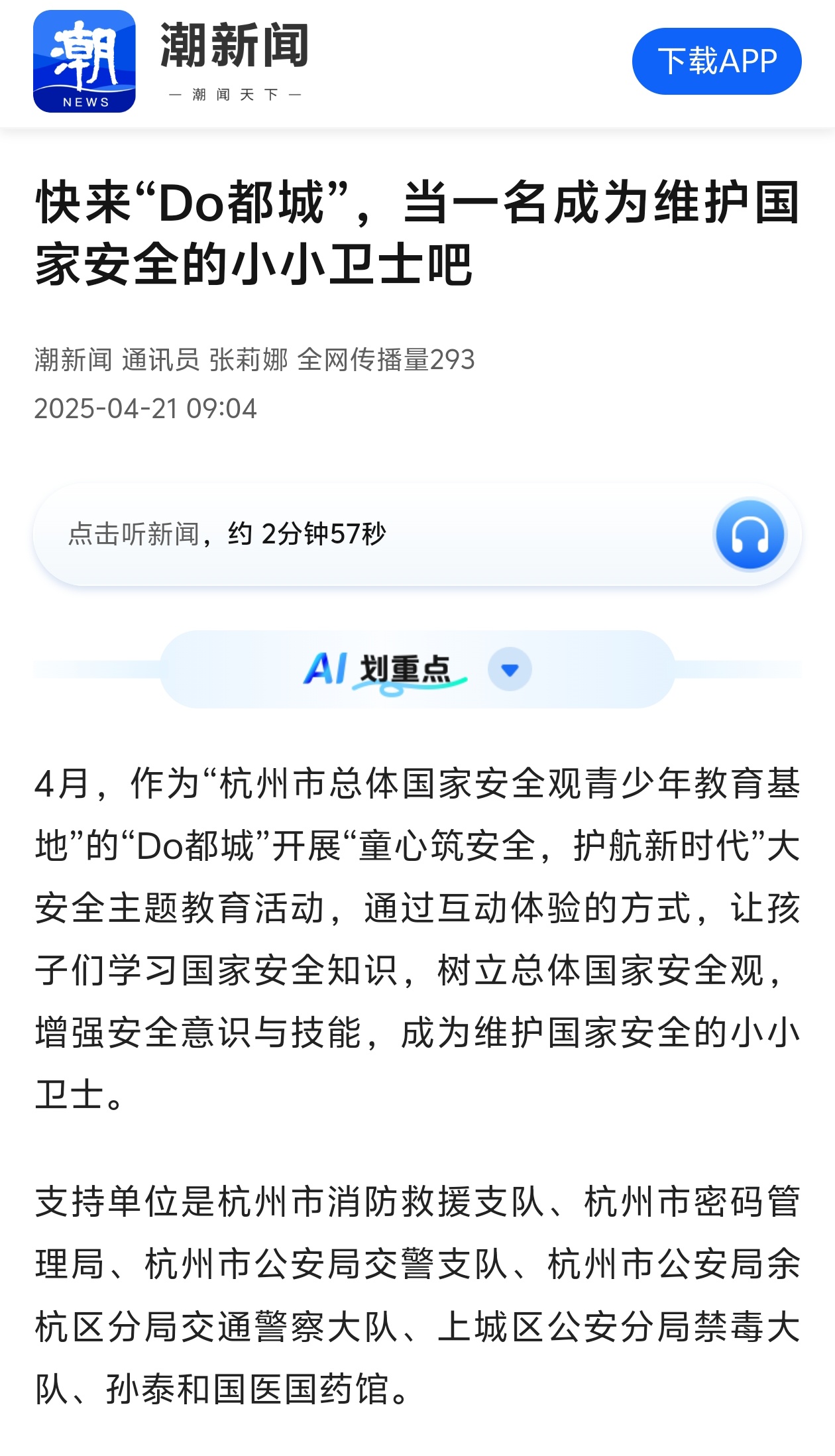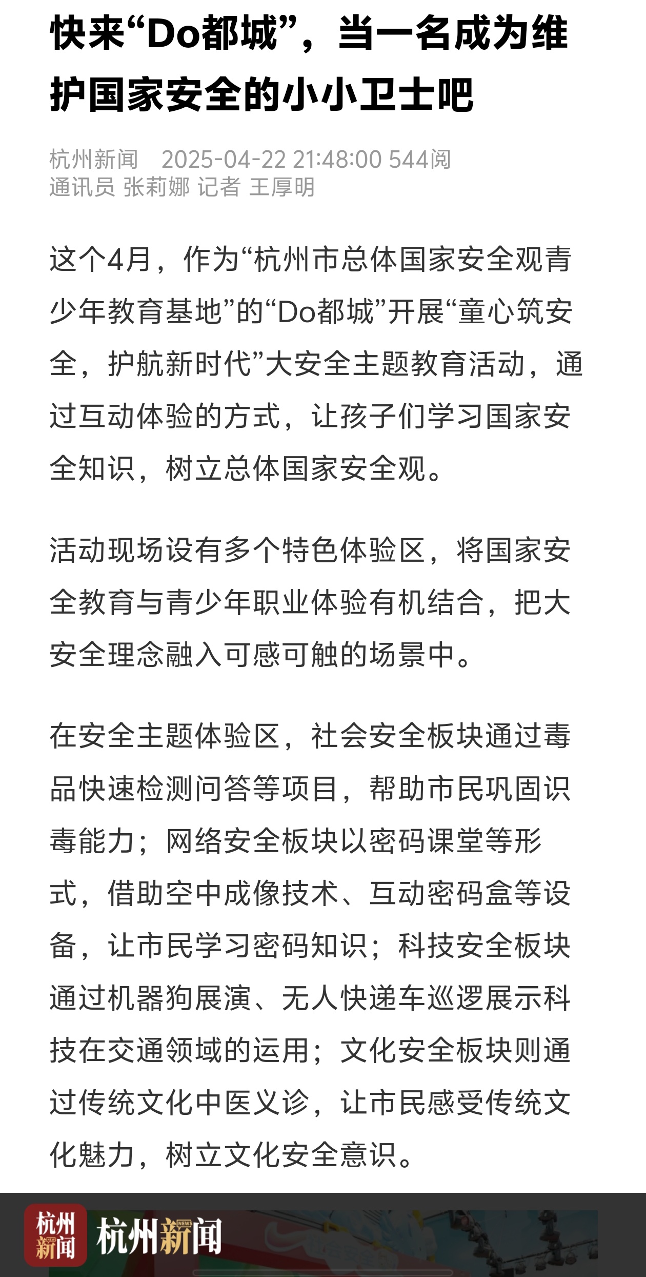 潮新闻、杭州新闻等报道“Do都城”国家安全主题活动
