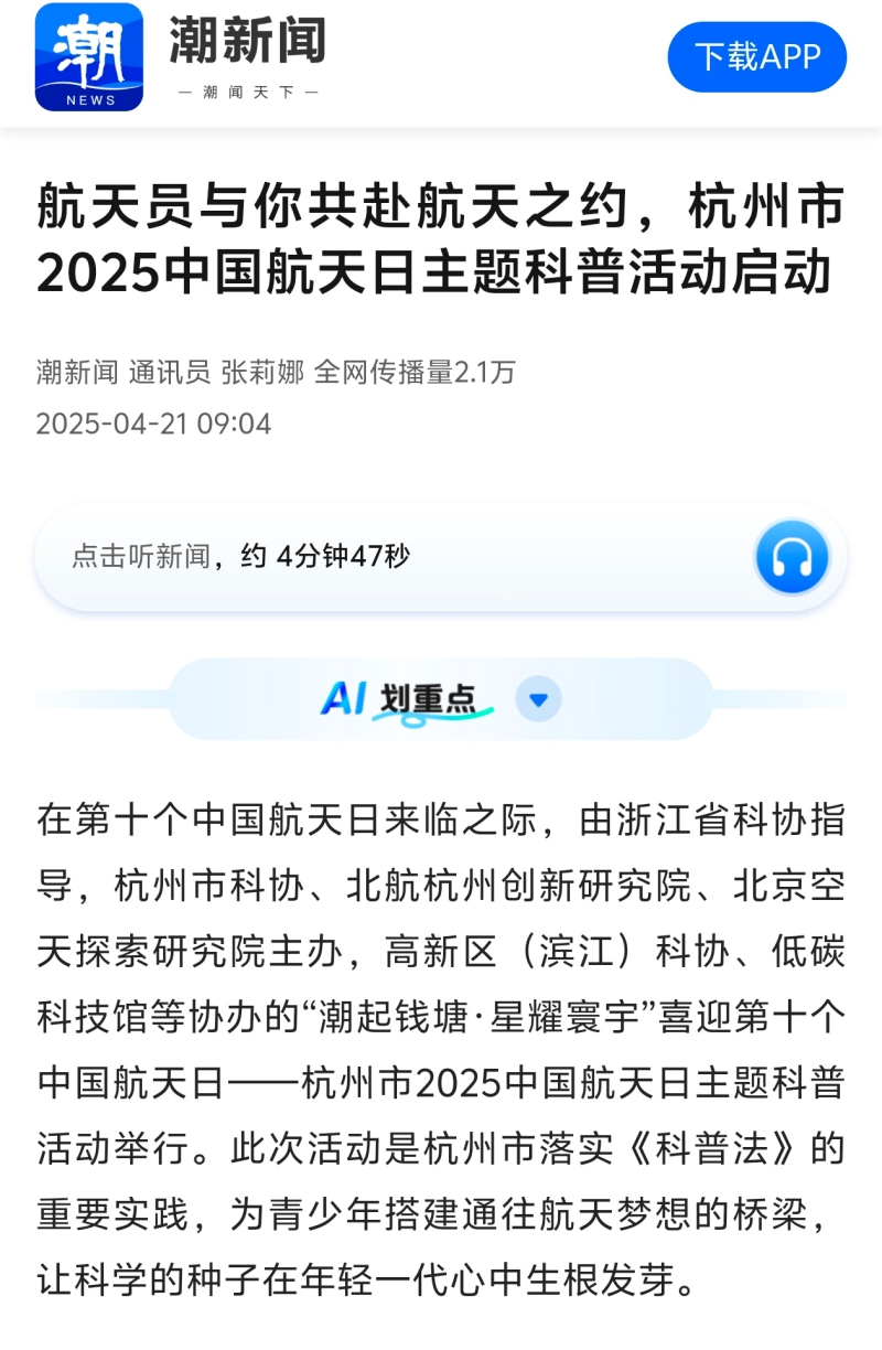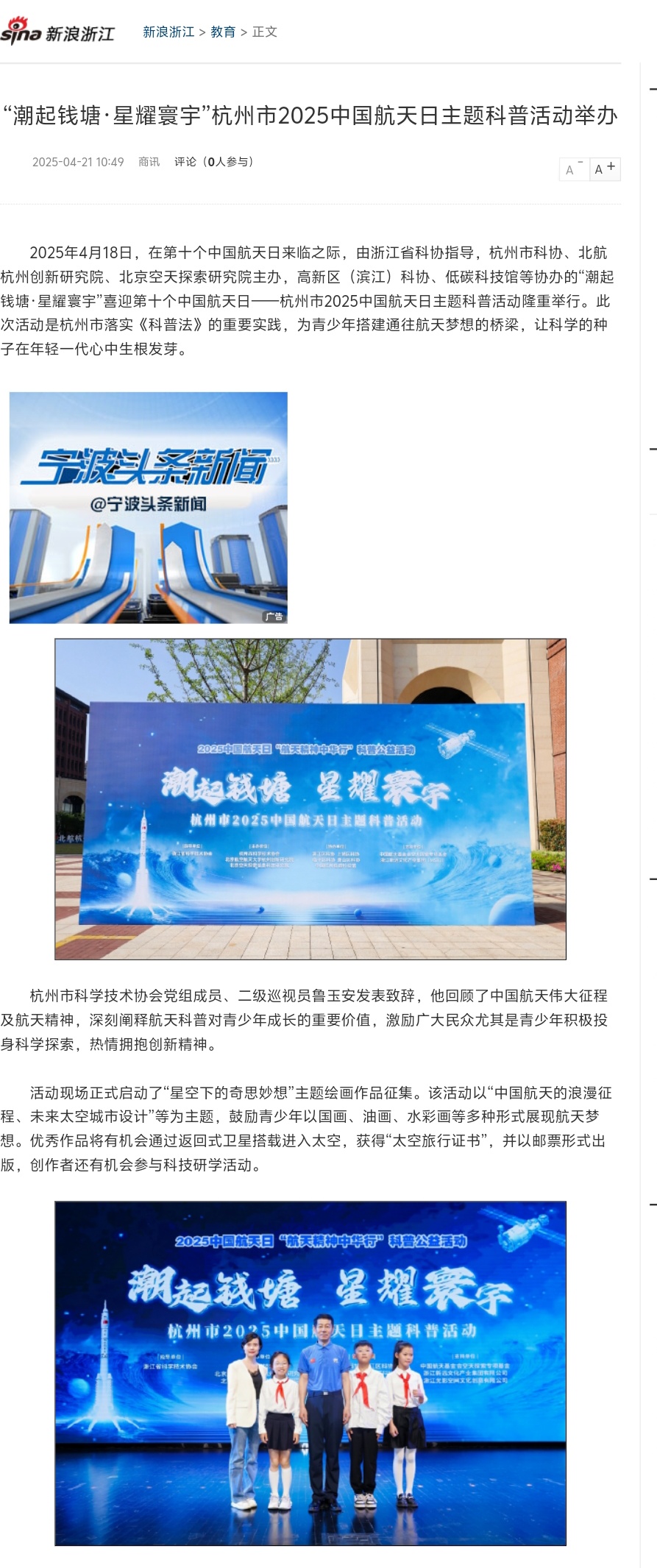 新浪浙江、潮新闻报道“Do都城”城市小主人中队队员采访航天员