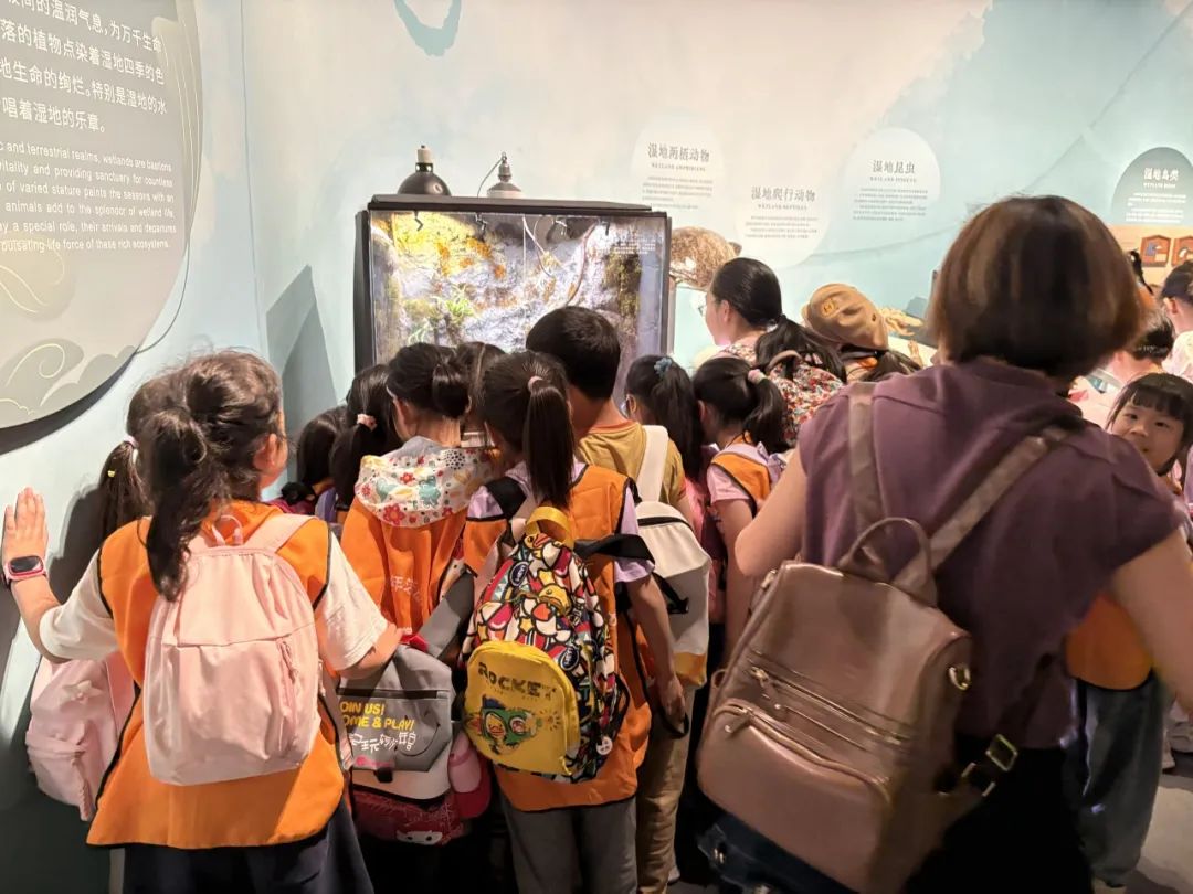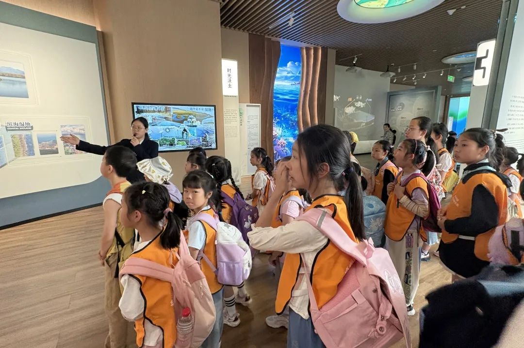 课程安排丰富多彩,上午学员们在博物馆专业讲解员的带领下,参观了数字展厅、湿地厅等核心展厅,并通过AR互动屏和全息投影技术,追溯湿地演变史,观察红树林生态。