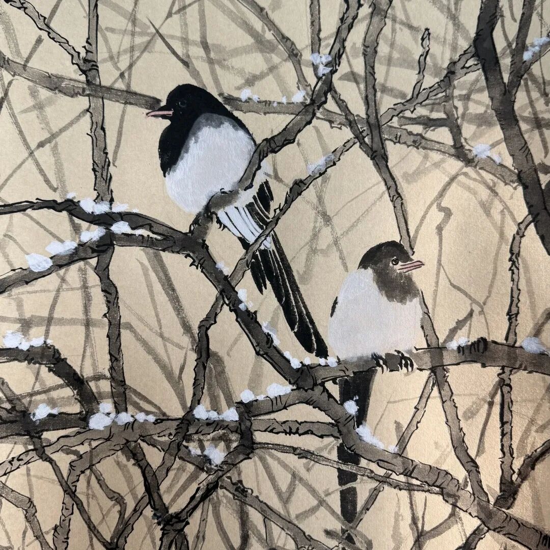 从“中国历代绘画大系”中选取古代绘画作品风格、技法进行临习创作。
