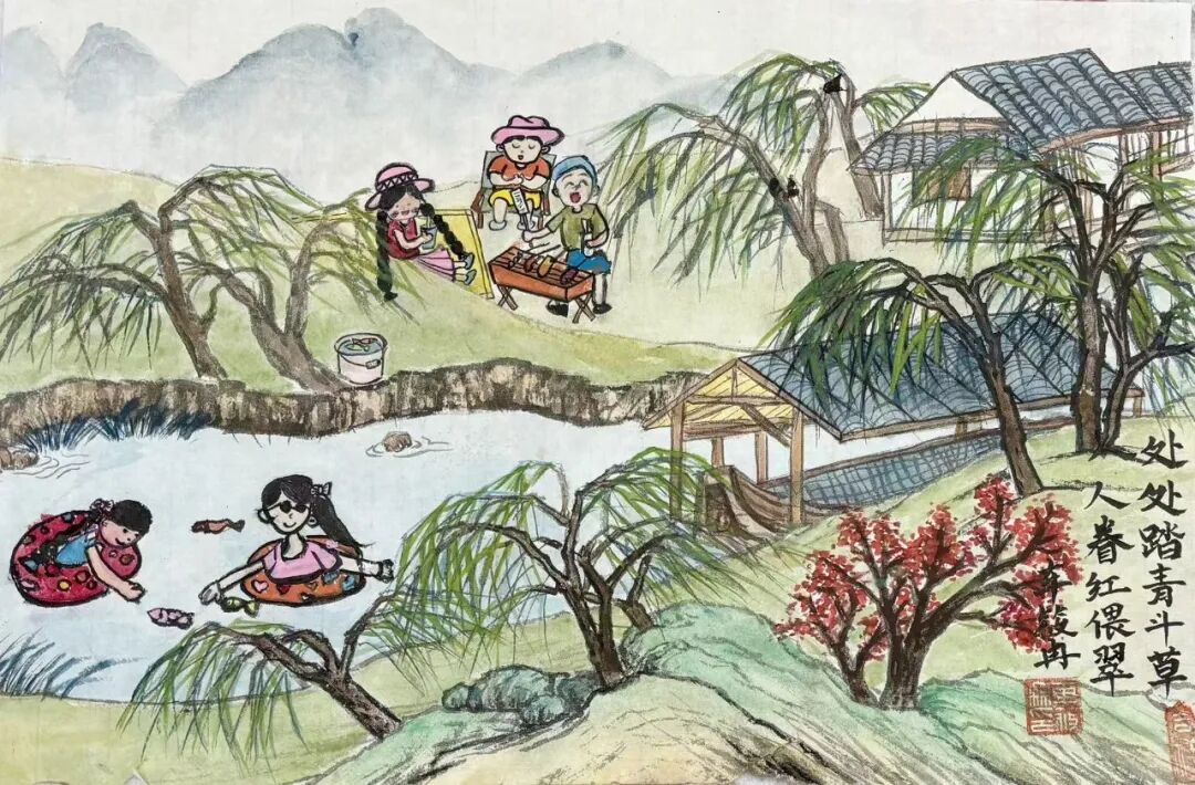 从王维诗中的“大漠孤烟直,长河落日圆”的雄浑壮阔,到李清照词里“争渡,争渡,惊起一滩鸥鹭”的灵动活泼,每一幅作品都承载着孩子们对古诗词的独特理解和对国画艺术的无限热爱。