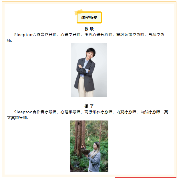 课程采用睡眠、芳香、冥想等专业疗愈法,融合呼吸调整、深度放松与正念冥想,解锁优质睡眠,重塑健康,提升生活品质。针对情绪激动时的应急冥想训练,协助学员克服情绪干扰,迅速调整至最佳状态。