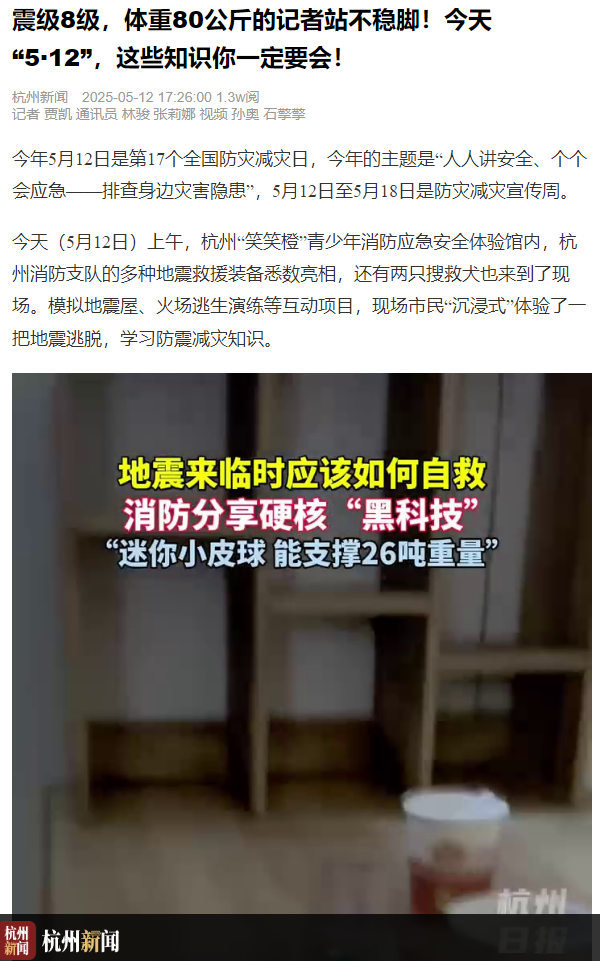 全国防灾减灾日“笑笑橙”体验上央视新闻直播,杭州日报等多家媒体聚焦
