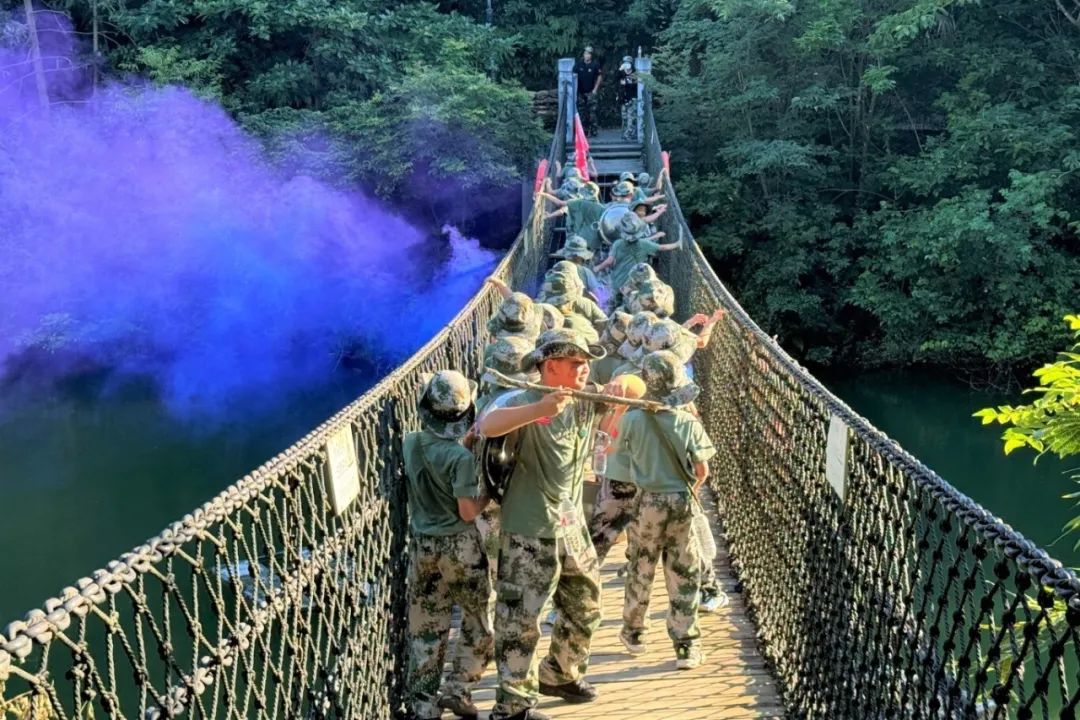 河谷绳桥、倒爬绳索、扎筏泅渡遇袭演练、军事定向……在逆境中学会冷静判断!