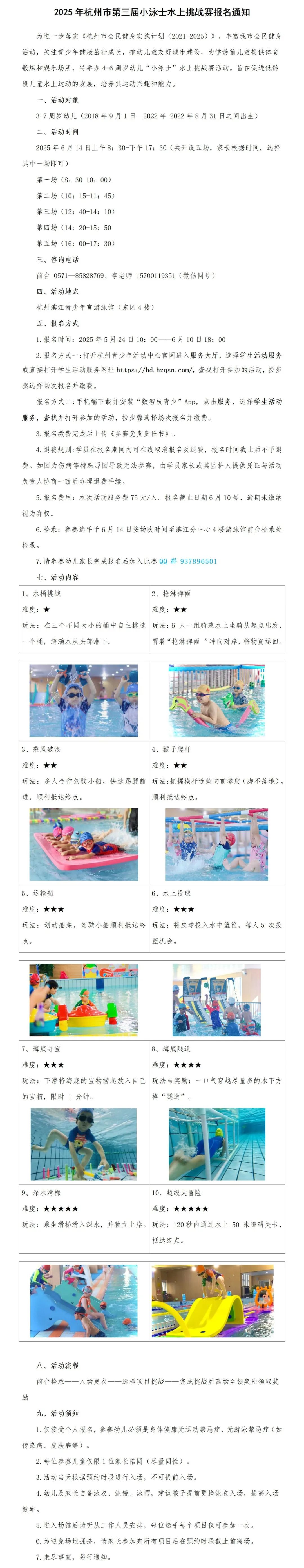2025年杭州市第三届小泳士水上挑战赛报名通知