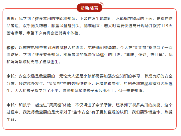 近期发生高层建筑火灾事件,如何在火场中正确逃生,怎么开展有效的日常防火检查,围绕这一主题,“笑笑橙”青少年消防应急安全体验馆特别设计“家庭消防安全”活动。多个亲子团队走进“笑笑橙”,在专业老师的带领下,体验消防员职业、地震避险,参与模拟火场逃生、防火督察等项目,在亲身体验中收获安全知识与生存技能。