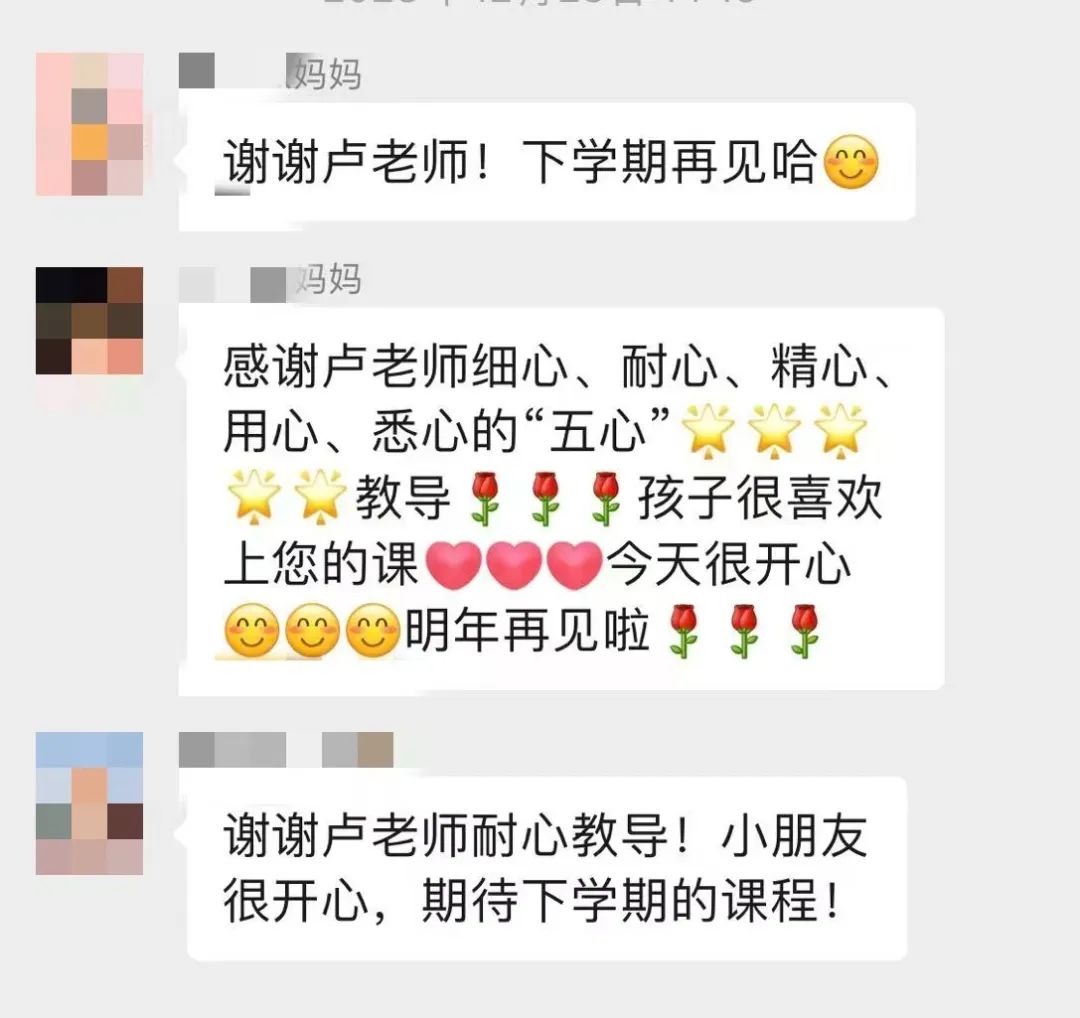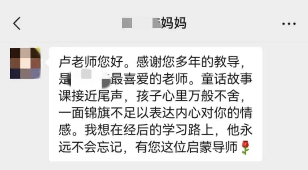 三位家长把锦旗递到卢老师手中,杨宇陆妈妈轻声说道:“孩子这两年变化很大,以前不太敢表达自己,现在回家总爱讲故事,还说‘最喜欢上卢老师的课’。”徐忆和曹梓允的家长也笑着点头。对他们来说,这面锦旗不仅是感谢,更是对卢老师两年来点滴付出的见证。他们表示,“孩子这两年在阅读和表达上的进步非常明显,变得更加自信和开朗。”