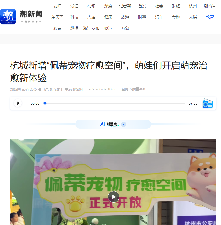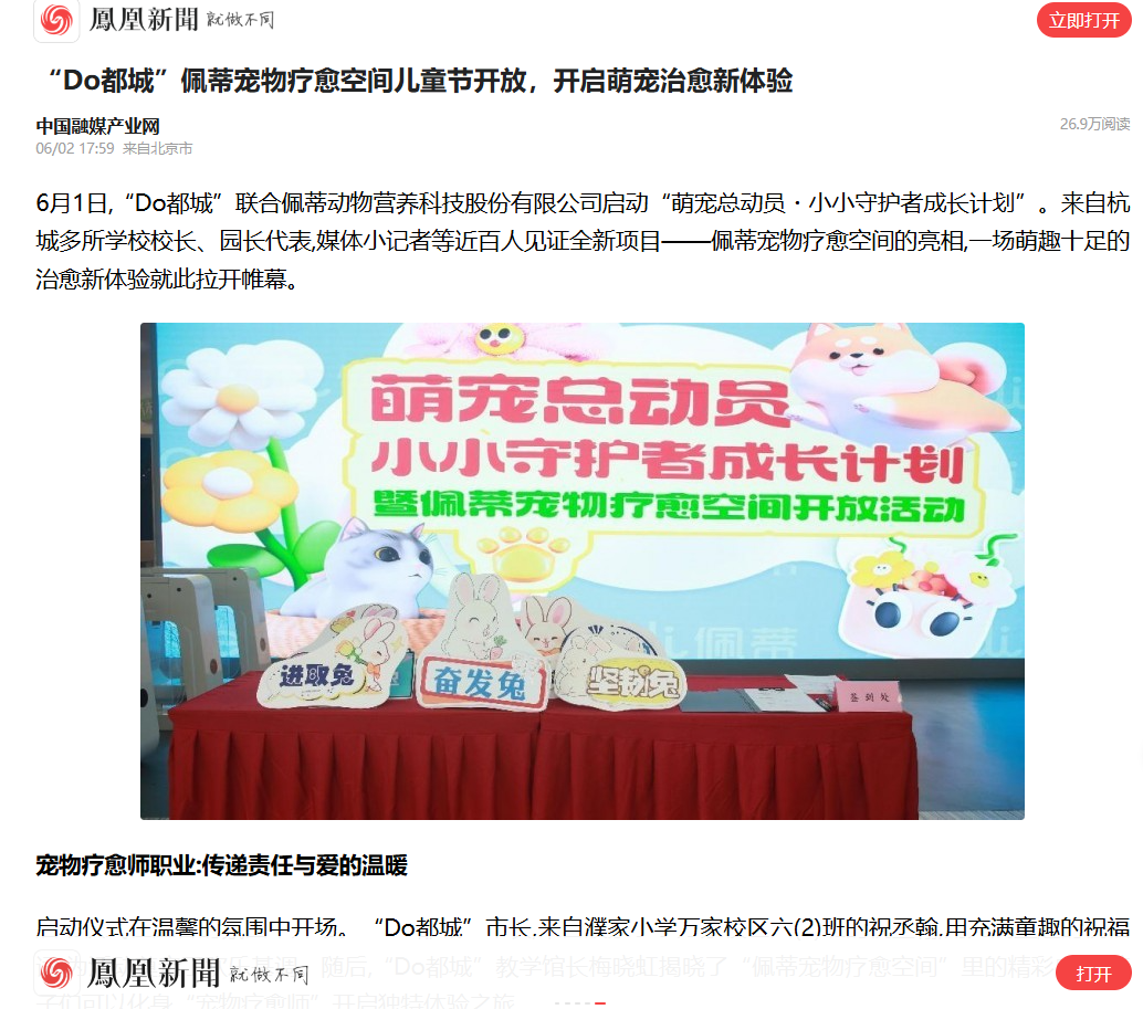 凤凰新闻、潮新闻、腾讯网等报道“Do都城”佩蒂宠物疗愈空间开放