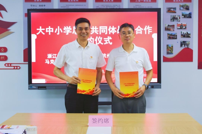 在签约仪式上,马院行政与心理中心教工党支部书记李佳、杭州青少年活动中心(以下简称“中心”)第九党支部组宣委员罗佳敏各作为双方代表,共同签署了《党建联建协议书》。