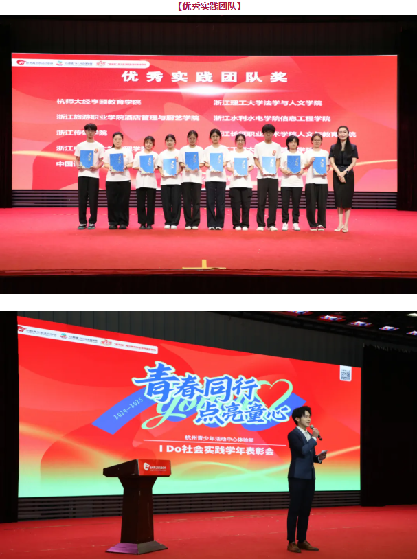6月22日,杭州青少年活动中心体验部举行2024-2025年度“I Do”社会实践学年表彰活动。活动通过成果展示、榜样表彰、经验分享等形式,生动展现“宫-校-社”联动育人模式的创新实践,来自30多所大中专院校的200余名师生代表共同见证了青年学子在社会实践中绽放的青春风采。