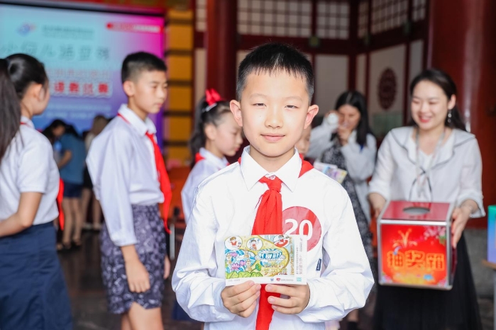 (参与现场活动的少先队员们拿到创意明信片十分喜爱,也从中学习到了亚残运知识)
