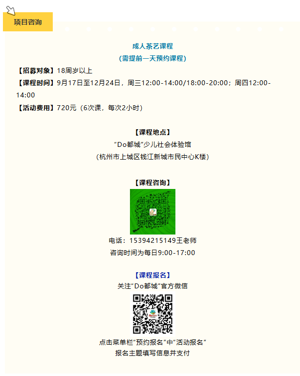 成人茶艺课程,是一门专为成年人设计的茶艺学习体验。这门课程旨在让学员们深入了解中国茶文化的博大精深,掌握茶艺的基本技巧,享受品茗的乐趣,提升生活品质。这个秋日,“Do都城”邀您一同沉浸于茶香的美好世界。