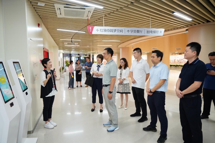 调研团队首先前往综合楼参观少先队杭州总部,听取了红领巾广场、迎宾大厅、红领巾筑梦空间、辅导员驿站等阵地的详细介绍,对中心依托红色阵地、数智化场馆开展的少先队组织育人工作有了较为全面的了解。