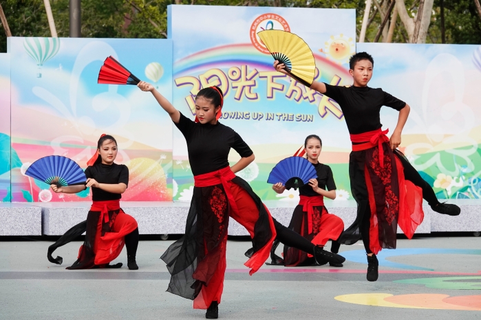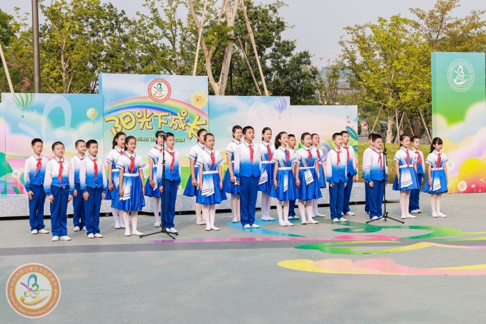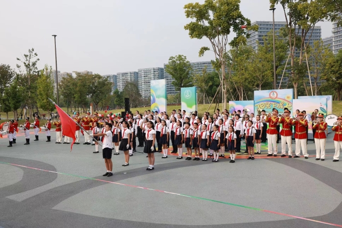 开幕式共设有“青春正少年”“队歌声声亮”“硕果展风采”“阳光下成长”“舞动迎亚运”五大板块,以器乐、舞蹈、合唱、朗诵、体育等多种艺术形式通过创新融合进行展示。同时,地点设在户外,舞台表演区的设计颇为独特,由五个移动小舞台搭配不同类别的艺术节目组成,以“流动式和定点式”相结合的方式呈现,体现了人文、艺术与自然的融合之美。