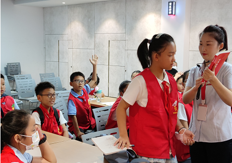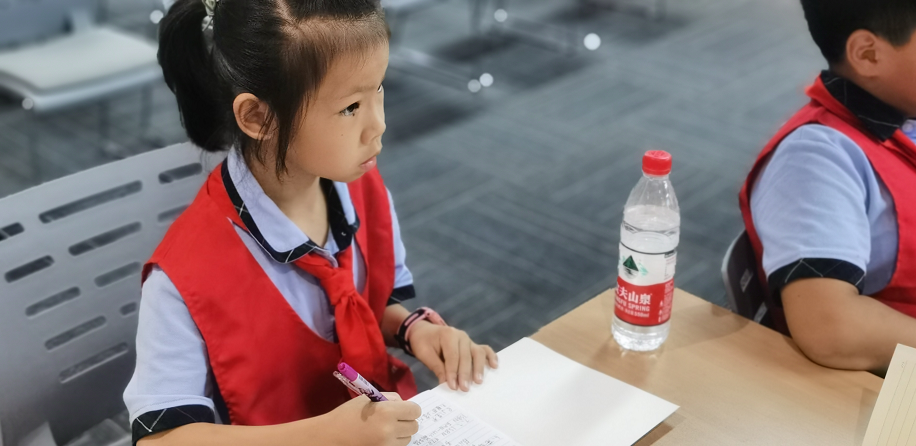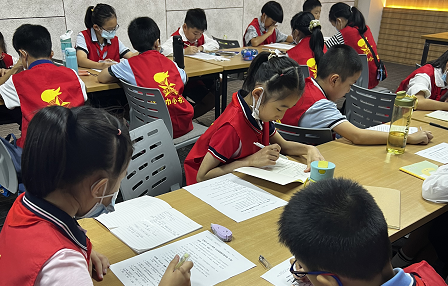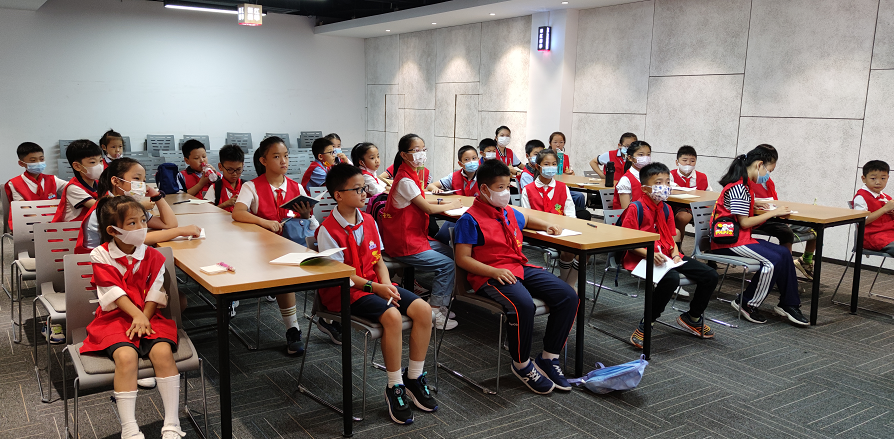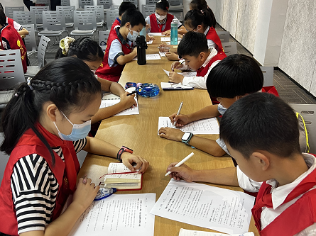 在“争章课堂”上,队员们一边聚精会神地听基地考官讲解新华书店的历史以及图书的相关知识,一边认真做好笔记,对即将完成的争章任务充满着好奇。