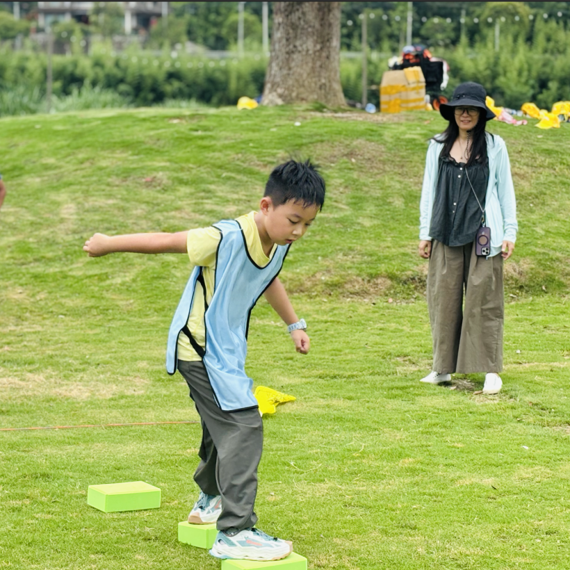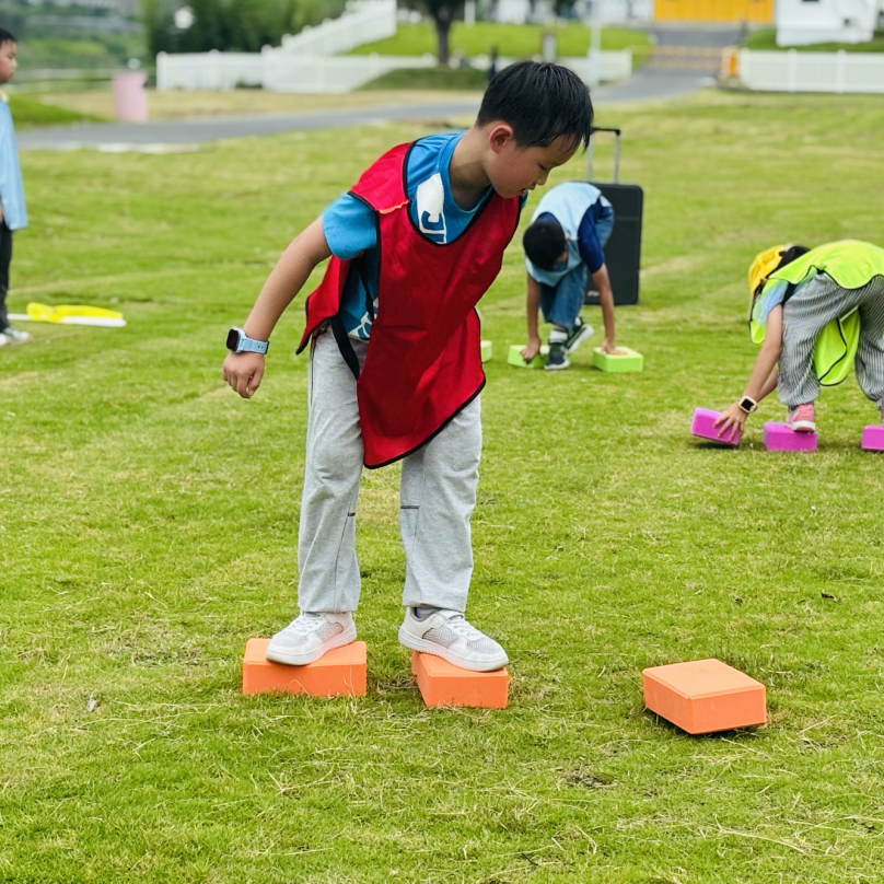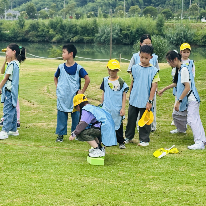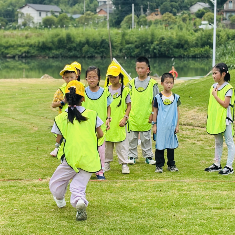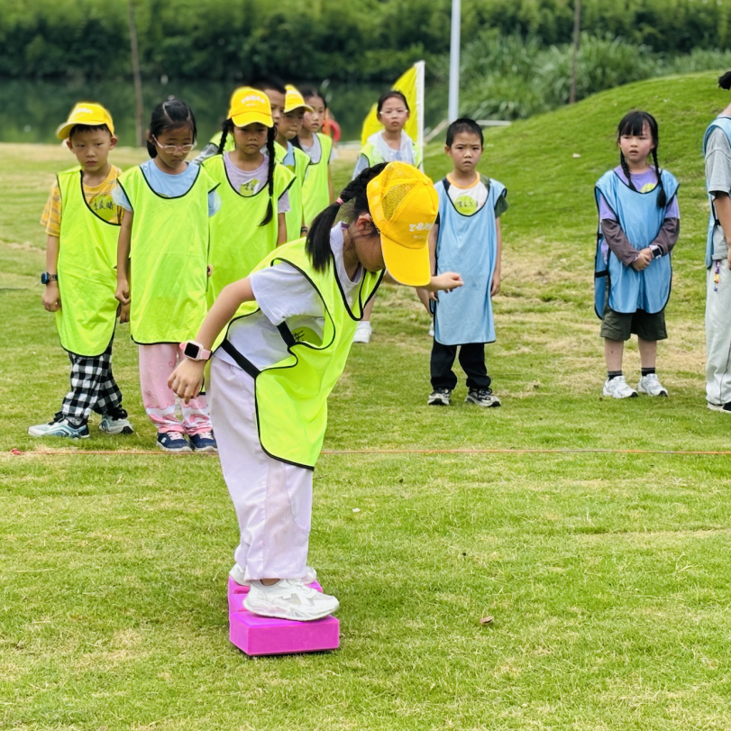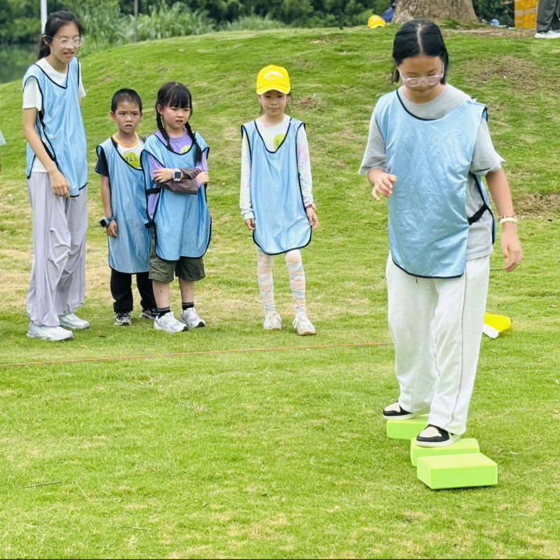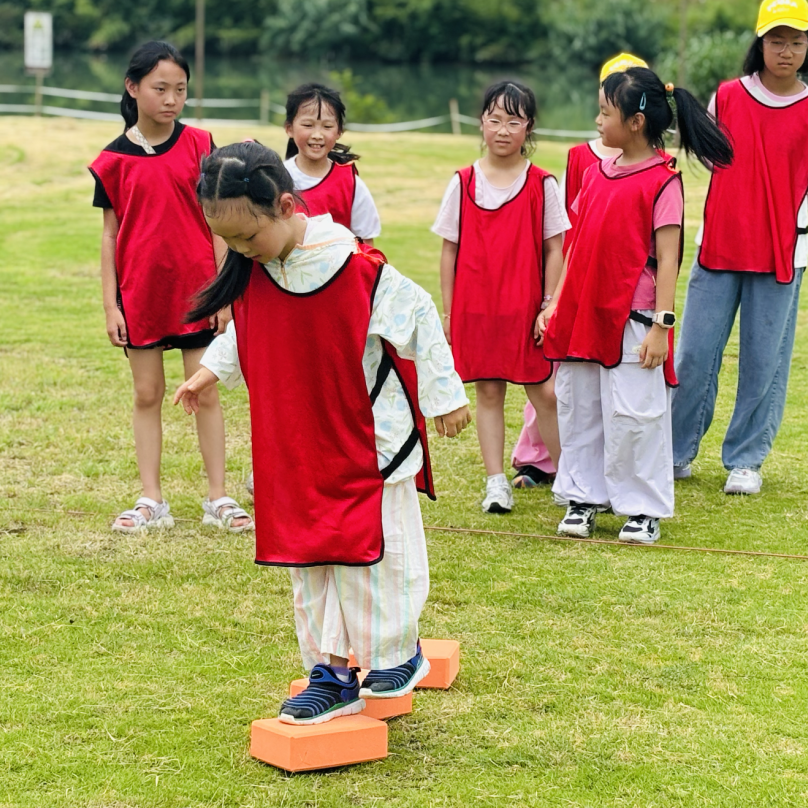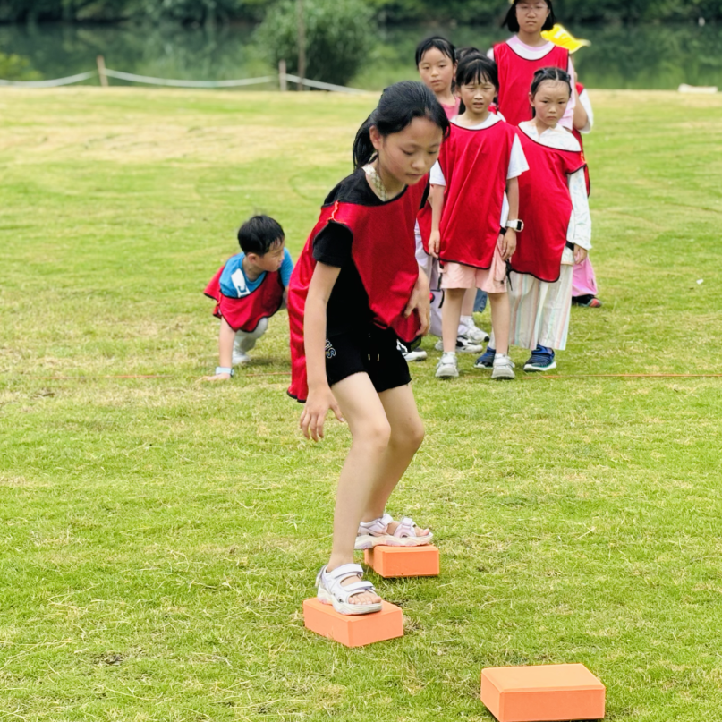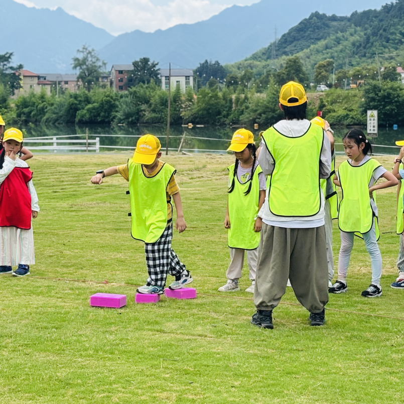 进入营地,学员们对满眼绿意发出惊叹,在大致游览营地后,我们进入了今天的第一个环节——趣味运动会。在陈教练的带领下,孩子们进行了报数分队和队旗、口号设计,以小组为单位进行了“摸石头过河”等游戏比拼,在玩耍的同时交到了不少朋友。