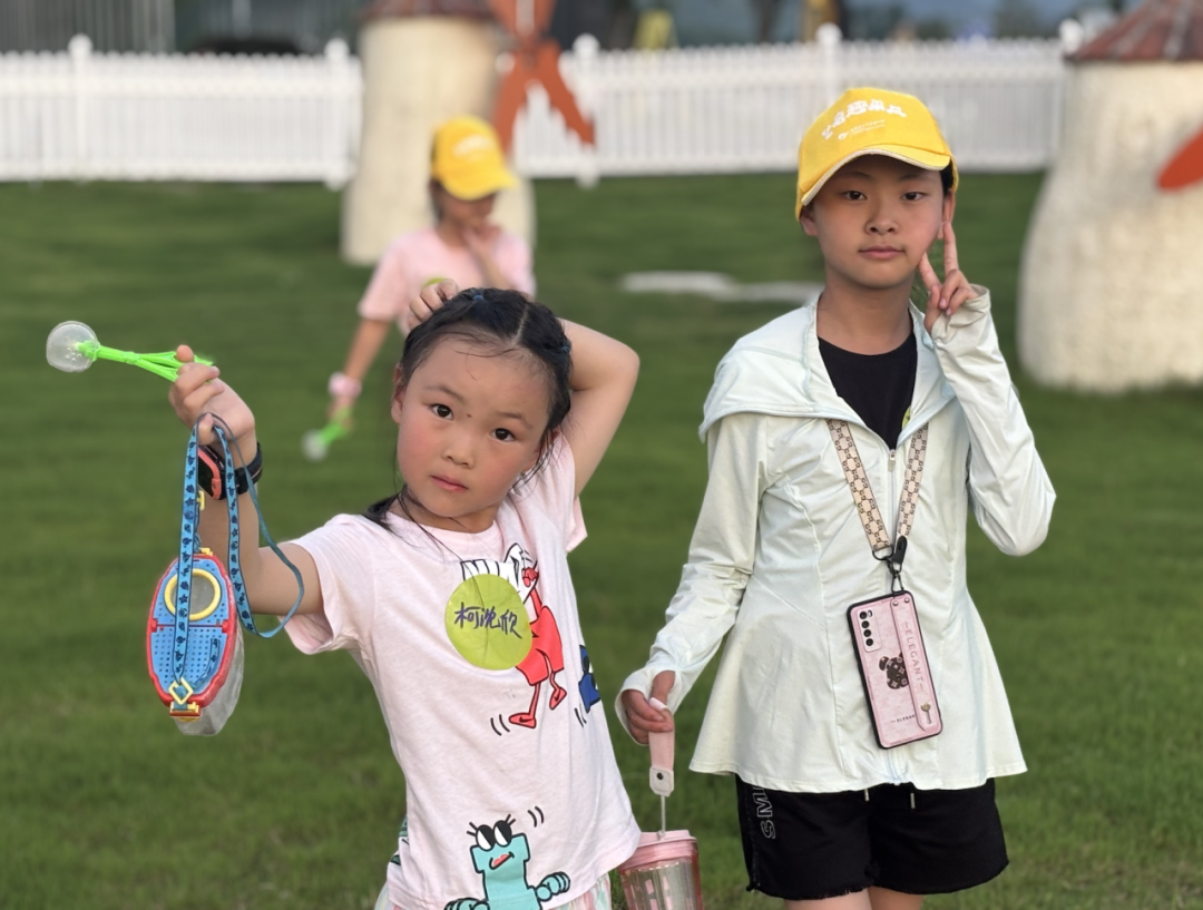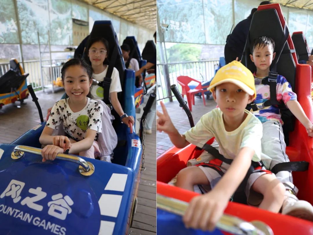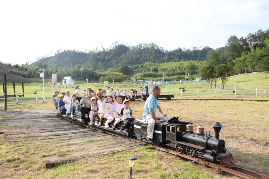 接着,我们迎来了本次研学的第三项活动——游园采风。跟随着陈教练的步伐,在风之谷一望无际的大草地,我们先后体验了mini小火车、丛林飞车项目。一时间,孩子们兴奋的叫声充斥着大家的耳畔。