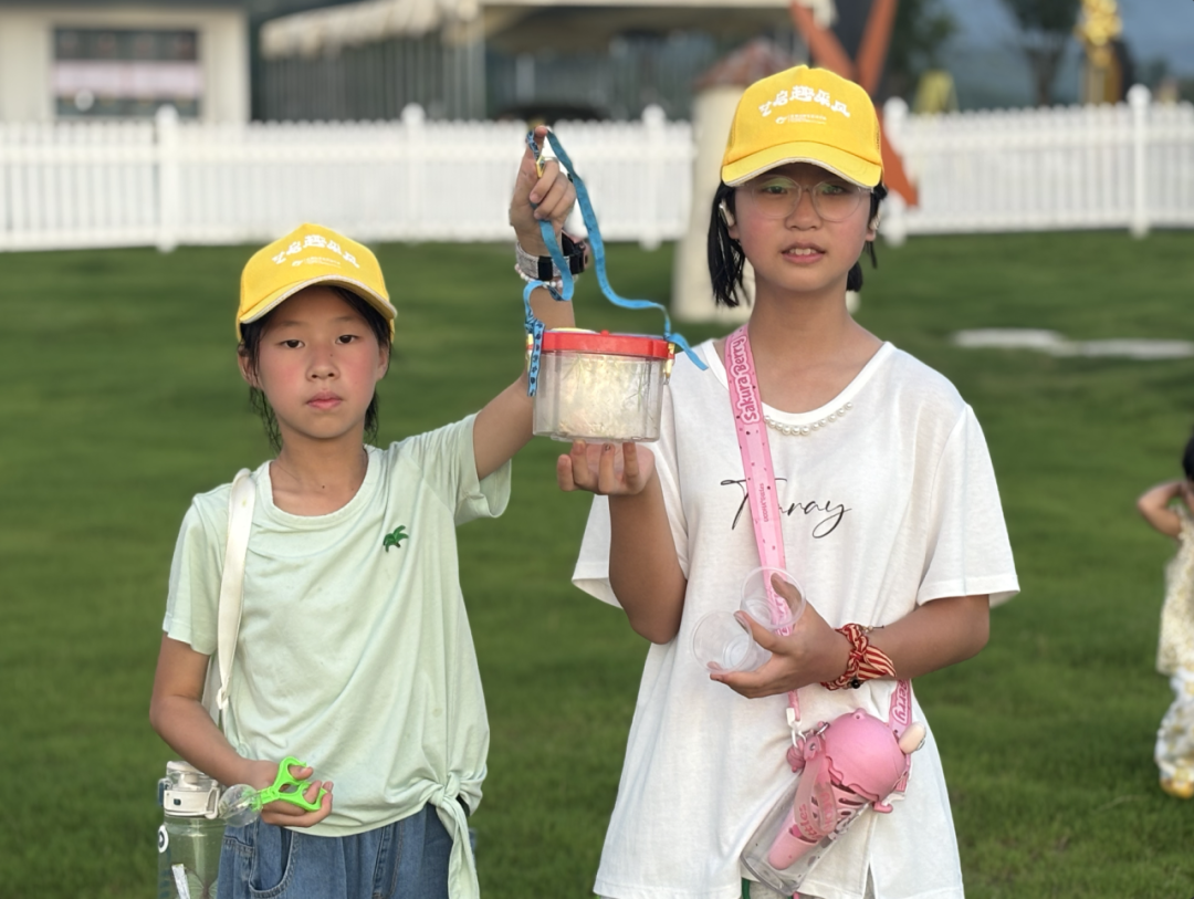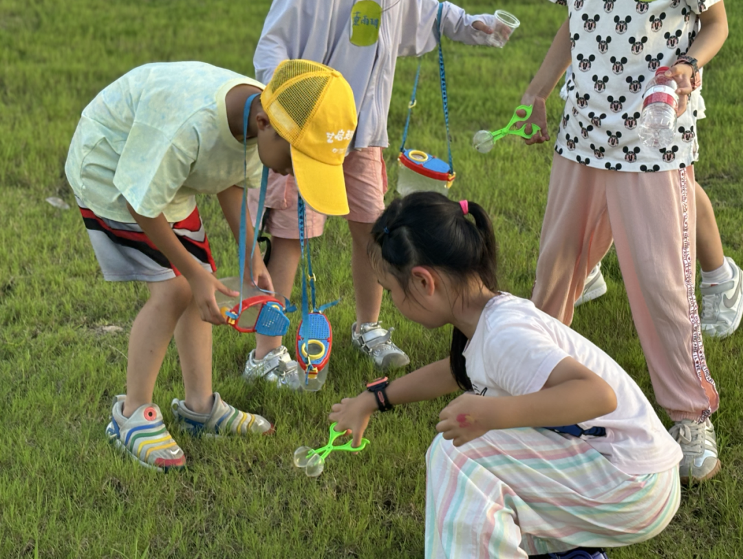 晚饭后,小队员们三俩成队,带着捕虫夹和捕虫盒来到了草地开始一场耐心的“捕虫挑战”。陈教练为大家讲解了蚂蚱等各种昆虫的特点和习性,大家收获满满。
