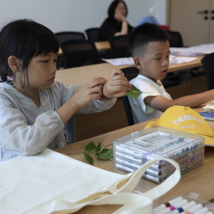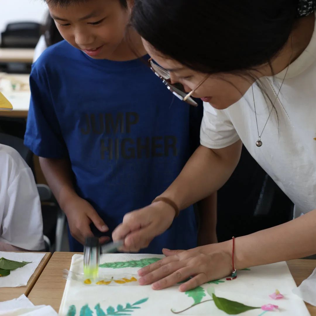 午饭后,我们迎来了本次研学的最后一站——小小叶片记录员和非遗植物拓染的课程学习。