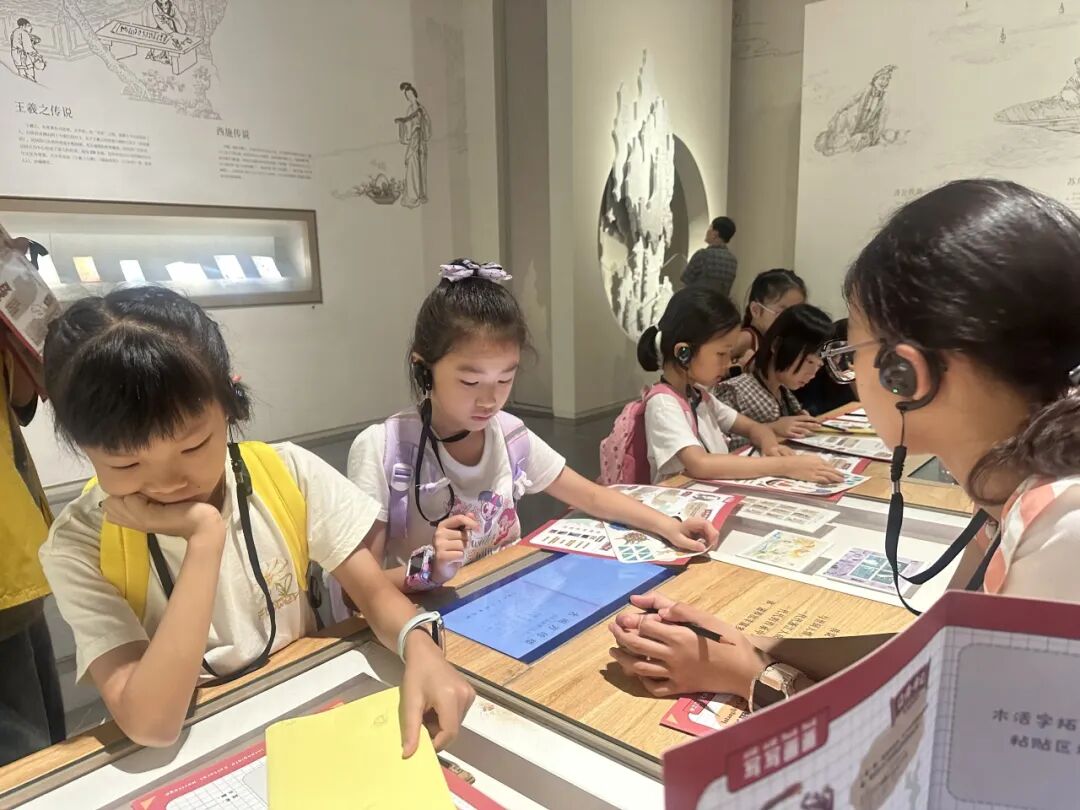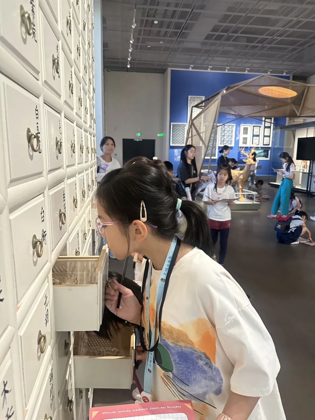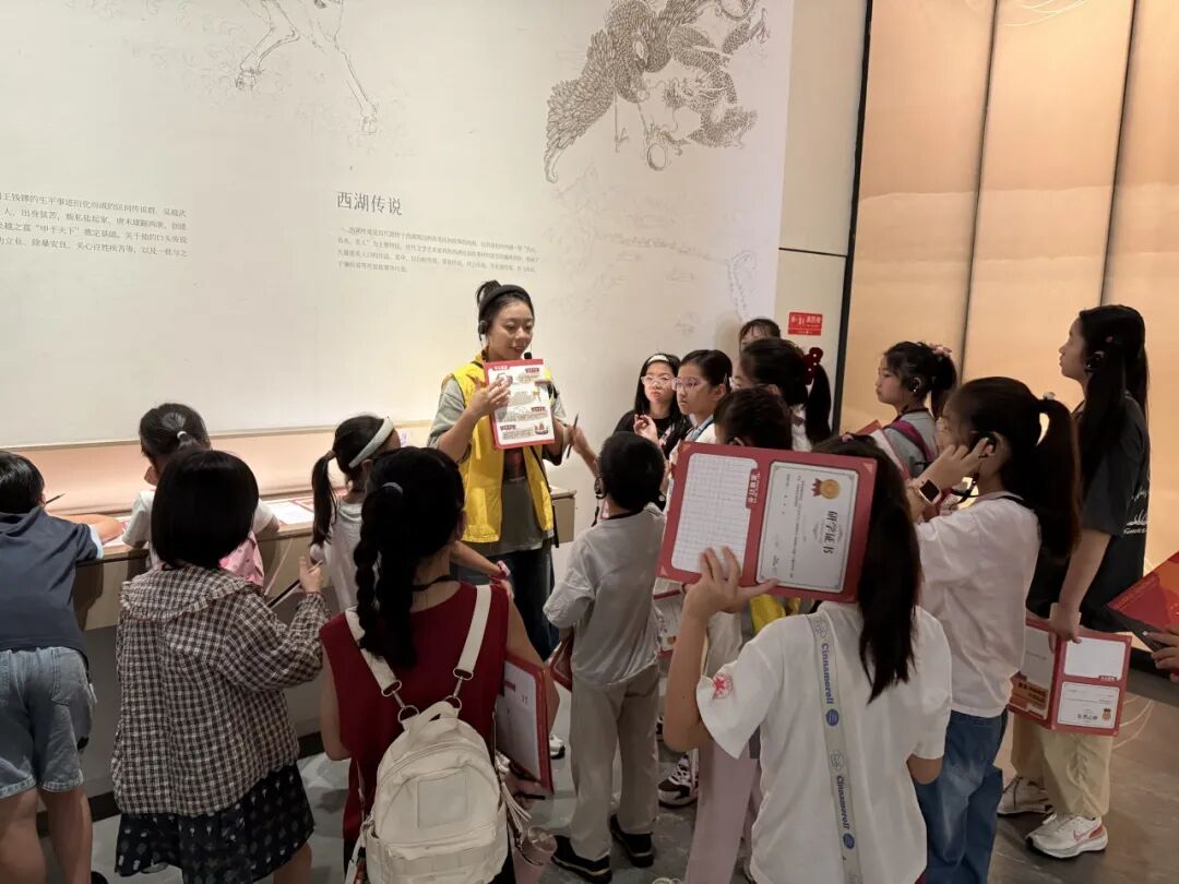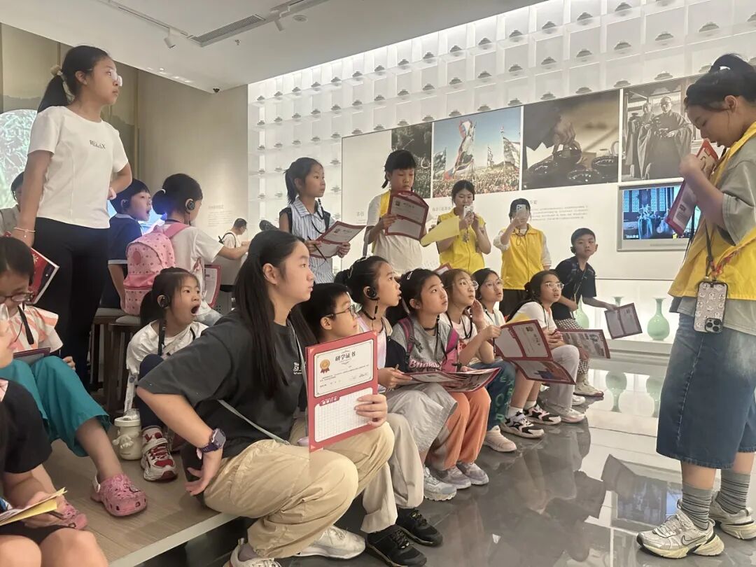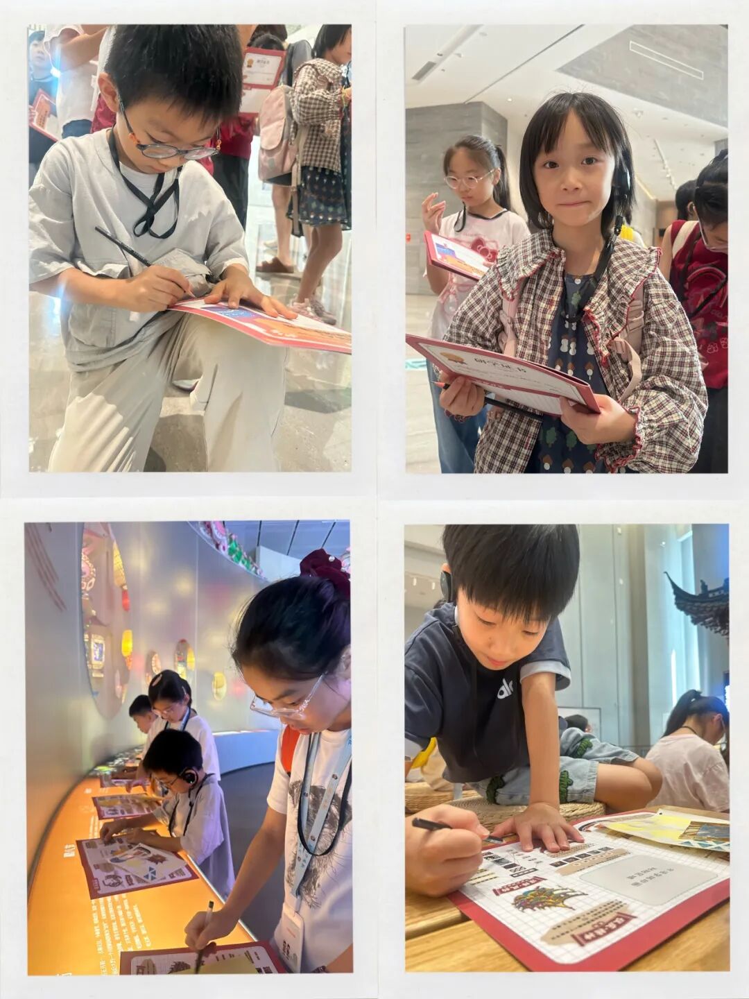 孩子们在展厅里驻足凝视:那些色彩斑斓的传统剪纸、灵动逼真的皮影造型、精雕细琢的木雕作品……每一件非遗展品都在诉说着浙江民间的“烟火气”与工匠们的“匠心魂”。当听到竹编技艺的历史渊源时,小社员们眼中满是好奇——这门看似朴素的技艺,竟藏着祖辈们的生活智慧与审美情趣。
