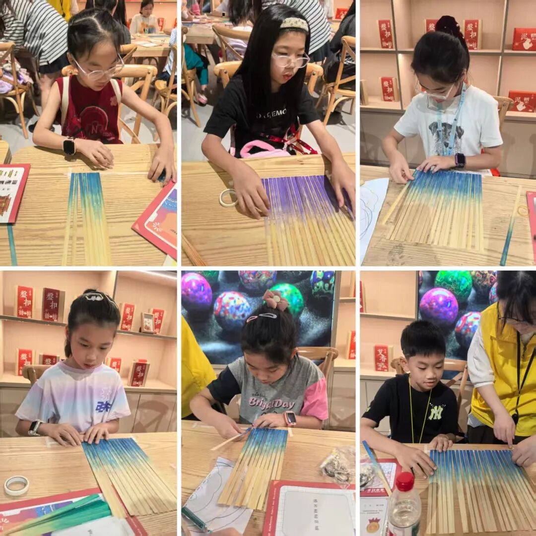 在亲手创作的过程中,孩子们不仅触摸到了非遗技艺的“温度”,更在美术创作的维度里,理解了传统工艺与美学设计的融合——竹编的纹理是天然的“肌理画”,扇面的造型是传统与现代的“创意碰撞”。